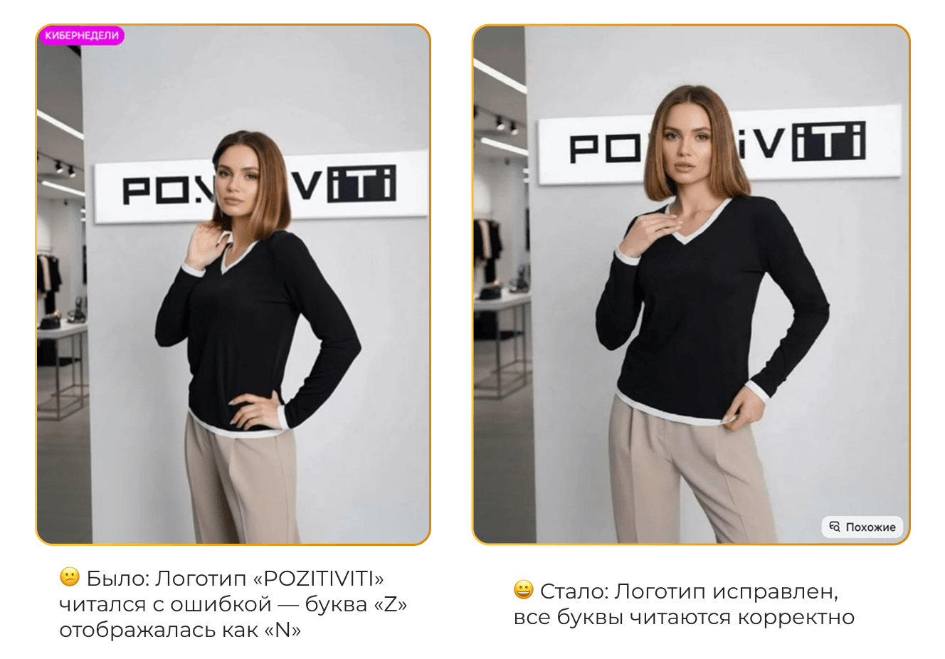 Во-первых, обратили внимание на видео: в некоторых карточках было заметно, что ролик сгенерирован нейросетью — световые переходы выглядели неестественно, а в названии бренда буква «Z» отображалась как «N». Мы посоветовали обрезать проблемные фрагменты и привести видео к единому стилю.