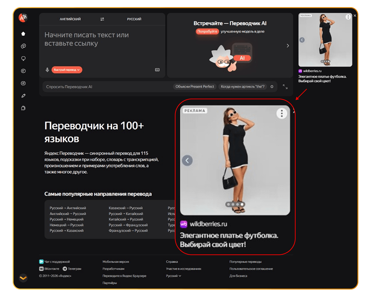 Нативное объявление с прямой ссылкой на карточку Wildberries. CTR 3,05%.