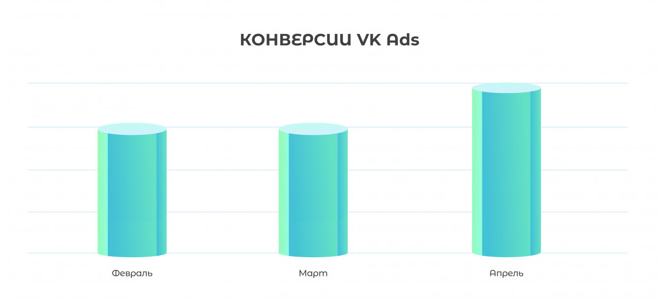 Мы расширили список таргетов VK Ads, поэтому с начала апреля бюджет кампаний постепенно увеличивался соразмерно эффективности.