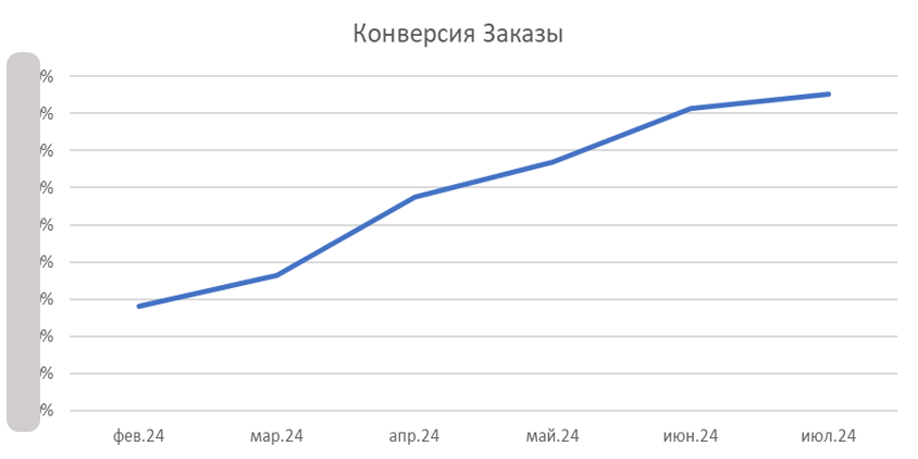 Конверсия в заказ по всем источникам выросла в 3 раза по сравнению с каждым из предыдущих месяцев.