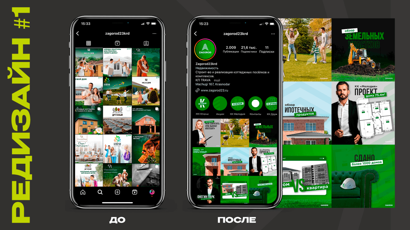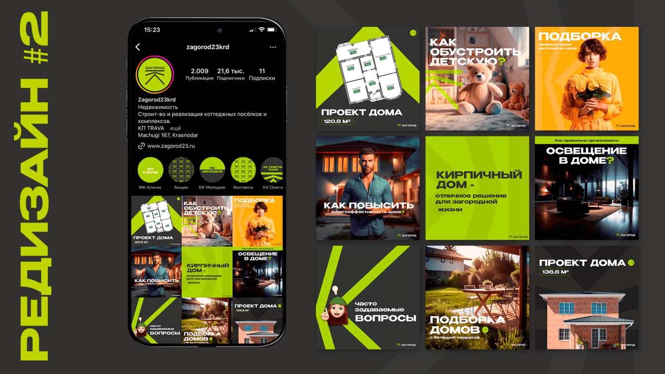 Многие забывают про сообщества в соцсетях, а это — дополнительный источник заявок. Поэтому мы продумали SMM-стратегию по ведению и “переодели” аккаунты в сочный зеленый цвет — ассоциация с загородной жизнью. В контент добавили обзоры с инфографикой, подборки планировок и информацию об ипотечных программах. Больше пользы и эмоций в постах — выше конверсия в заявку. Часть бюджета была запущена на подписку в группу, что в свою очередь привлекло 10 лидов.