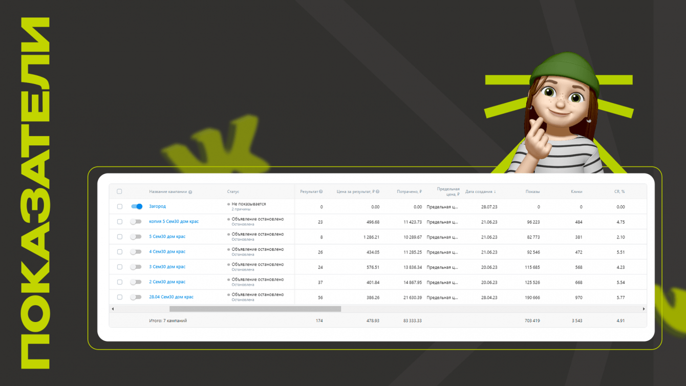 Поэтому особый акцент сделан на визуальной составляющей: качественные, яркие изображения и короткие, но емкие и привлекающий внимание тексты под разные портреты ЦА. Более того, для строительных компаний важна наглядность и информативность объявления.