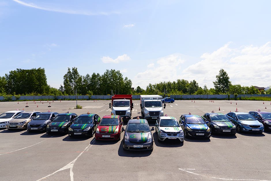 К слову, масштабировалась и сама автошкола. Посмотрите на фото автопарка и сравните с тем, что было первым. Автопарк подрос так, что теперь проблематично выставить все машины в ряд для фото)