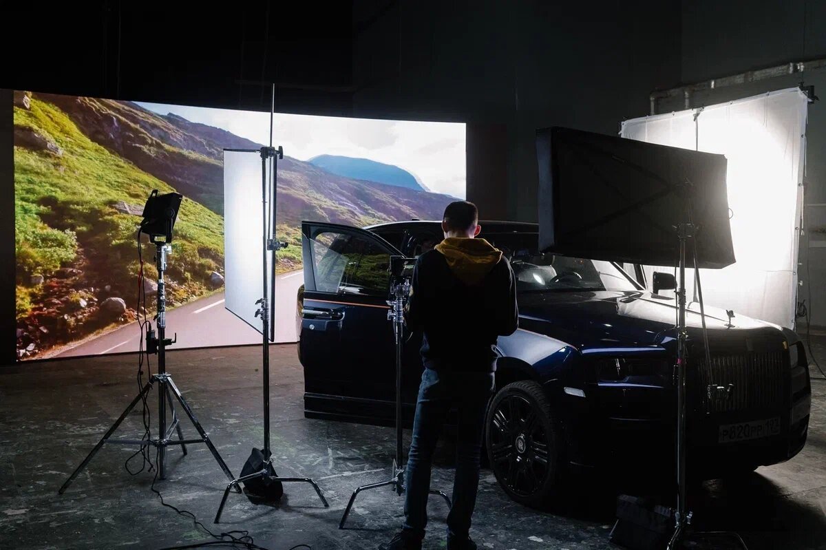 Съемка планировалась в павильоне с огромными LED-экранами, отображающими красивые дневные фоны: мегаполис с небоскребами и природу с полями. При выборе студии ориентировались на наличие верхнего света для получения игры бликов на авто, а также на возможность въезда спорт-кара с низким клиренсом. Еще мы провели кастинг актеров и подобрали одежду.