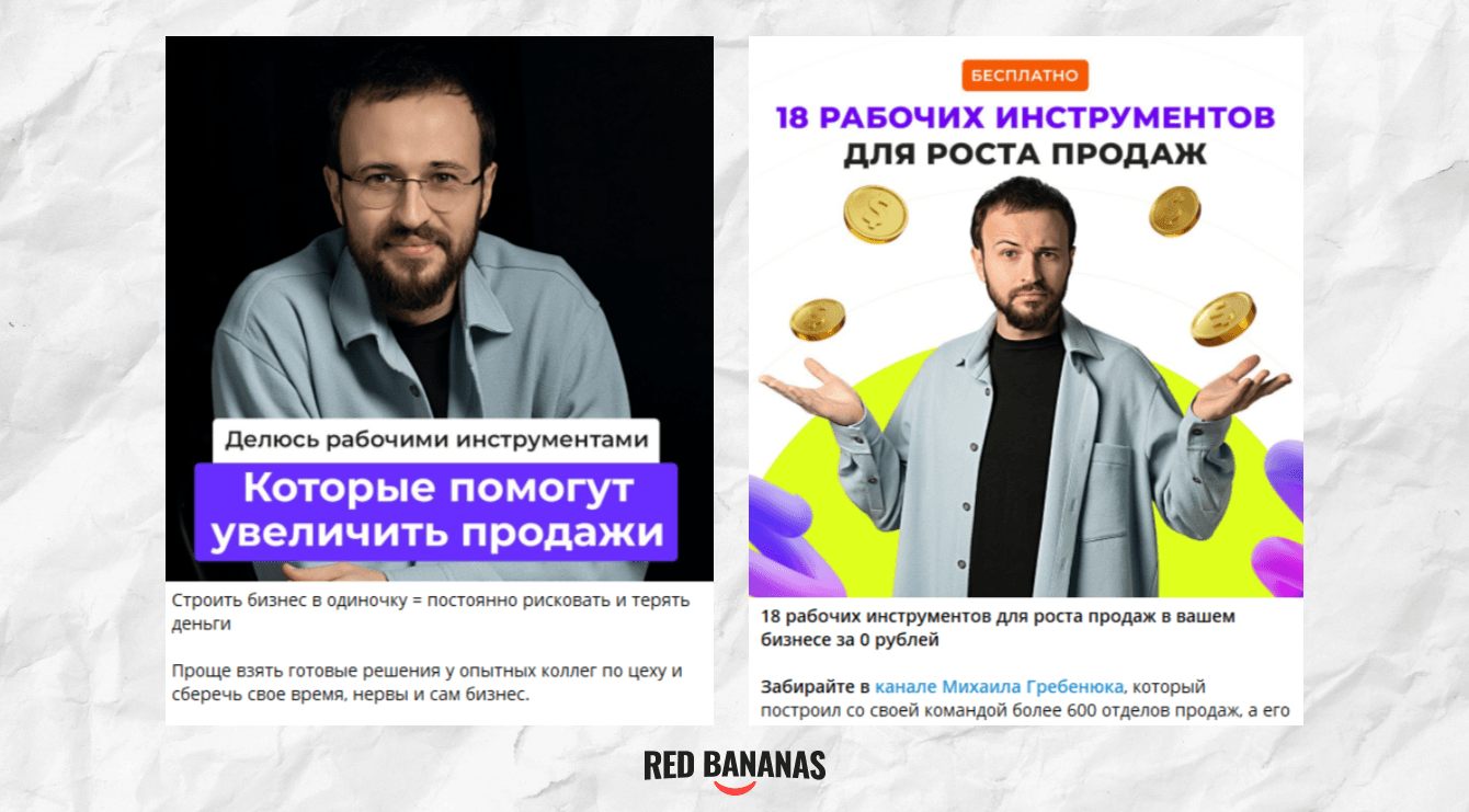 Задача, с которой представитель эксперта пришёл за трафиком в агентство Red Bananas — привести целевых и проактивных подписчиков в ТГ-канал Михаила Гребенюка.