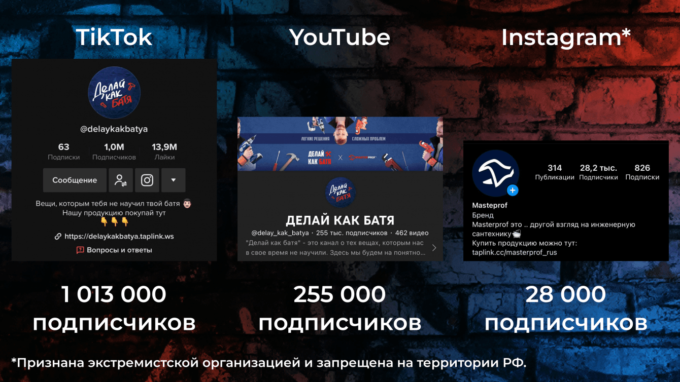 Так как для Бати сантехника - это его ремесло, к проекту он относиться с максимальной ответственностью. Информация, которую он транслирует от лица компании - это то, что он транслирует и лично от себя. Он заинтересован в развитии как и бренда МастерПроф, так и в личной медийности.