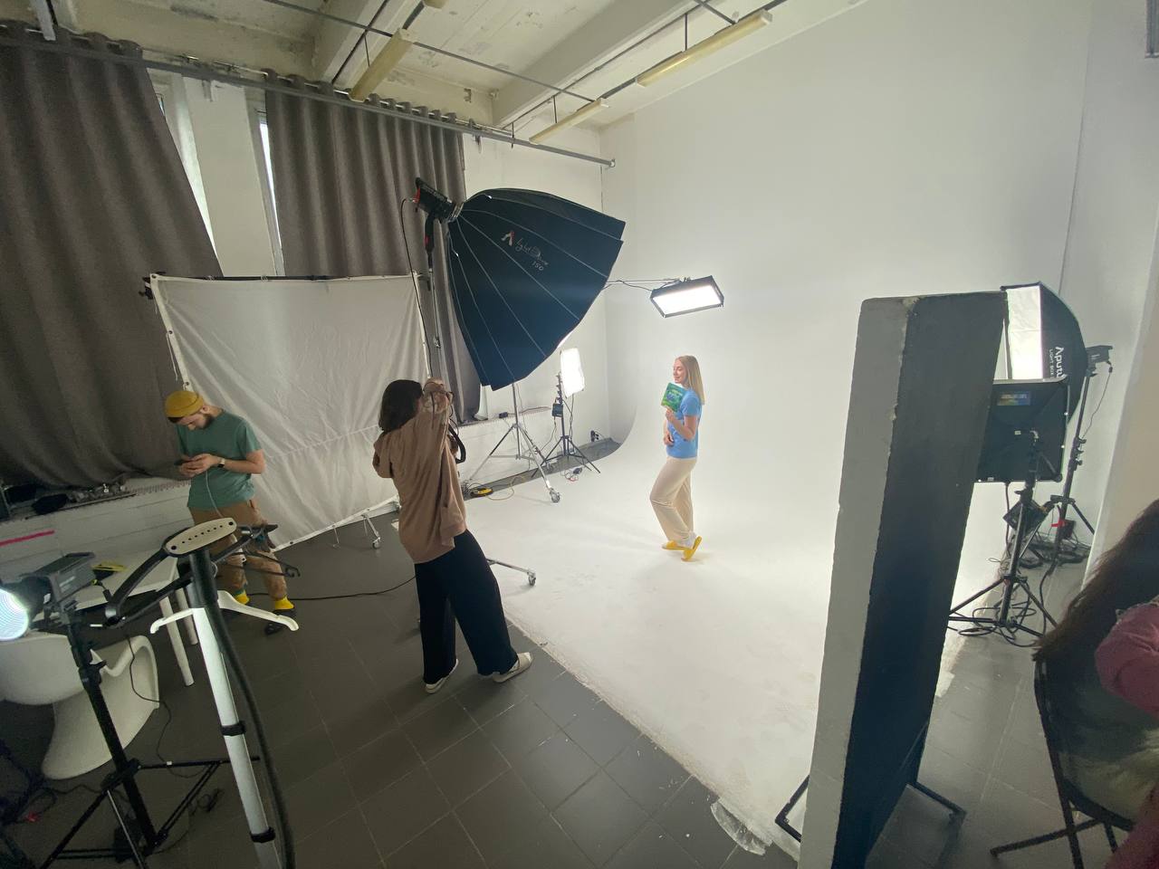 Мы подобрали студию, которая совмещала оба этих пространства, что позволило нам провести всю съемку в один день, сэкономив время и бюджет клиента.