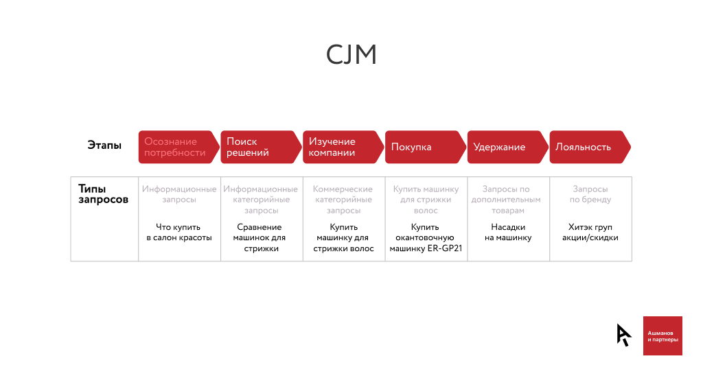 Поскольку целью было привлечение именно новых клиентов, которые только начали формировать свои потребности и запросы, мы составили CJM — карту пути клиента. Затем мы:
