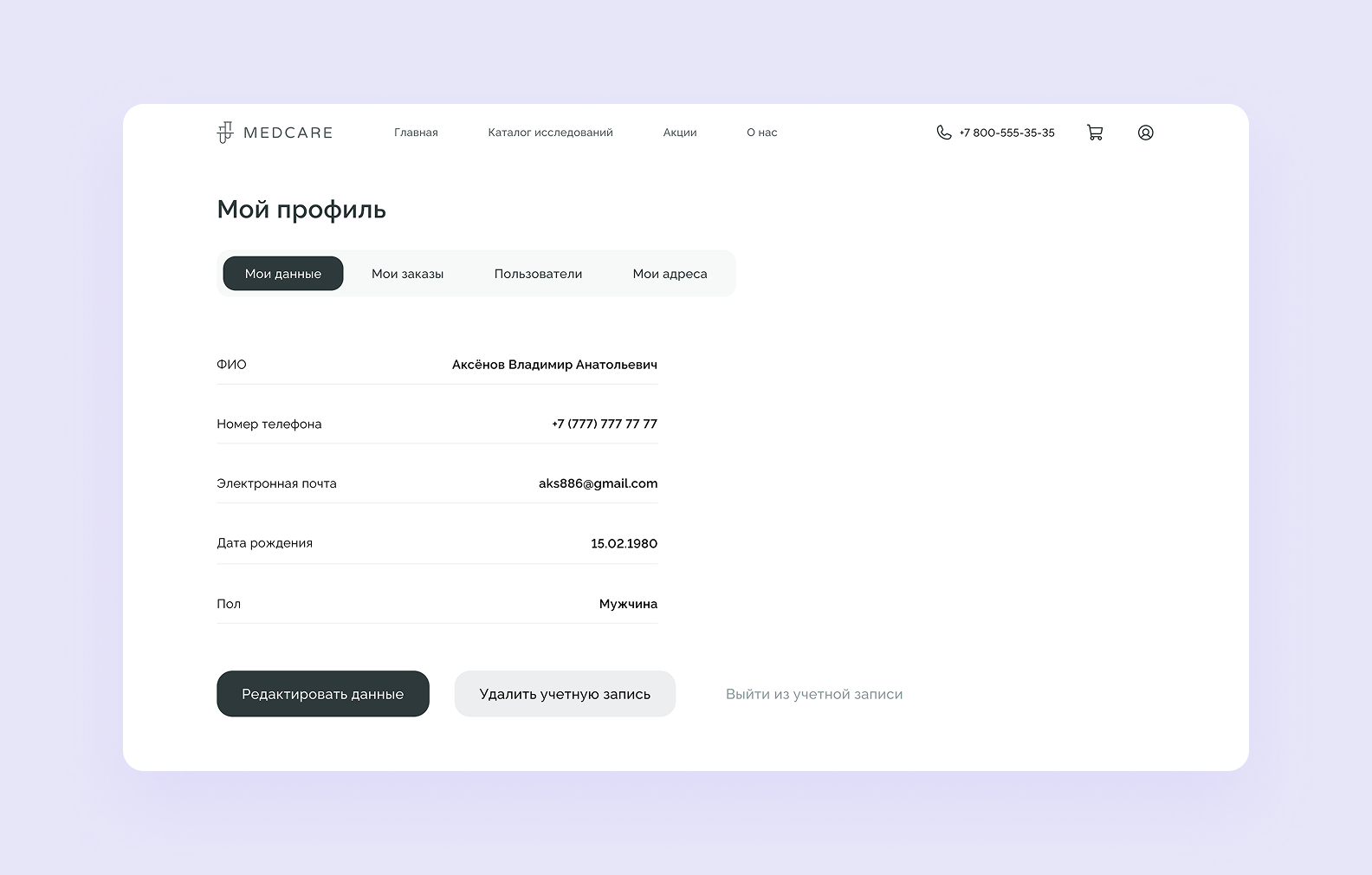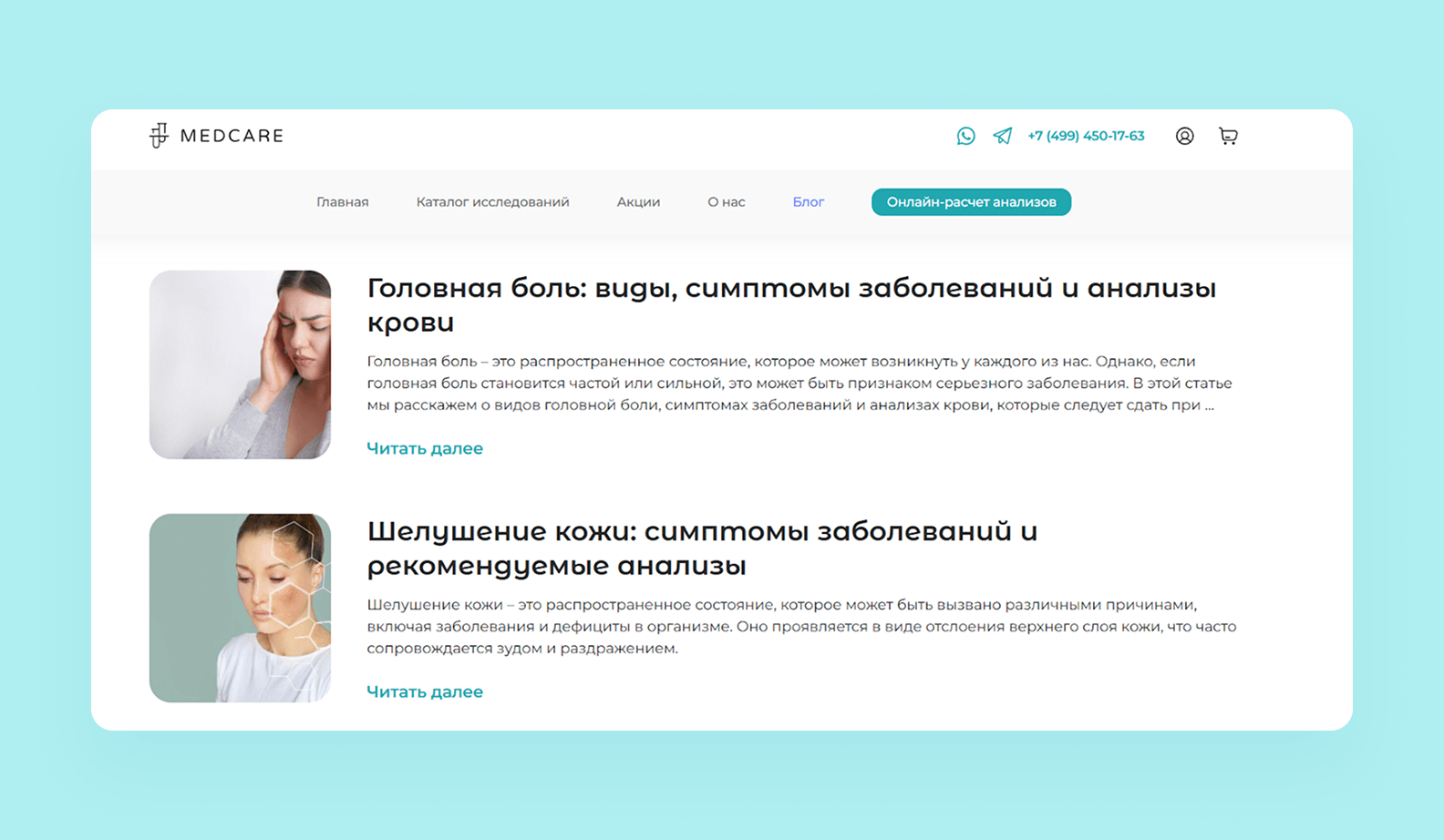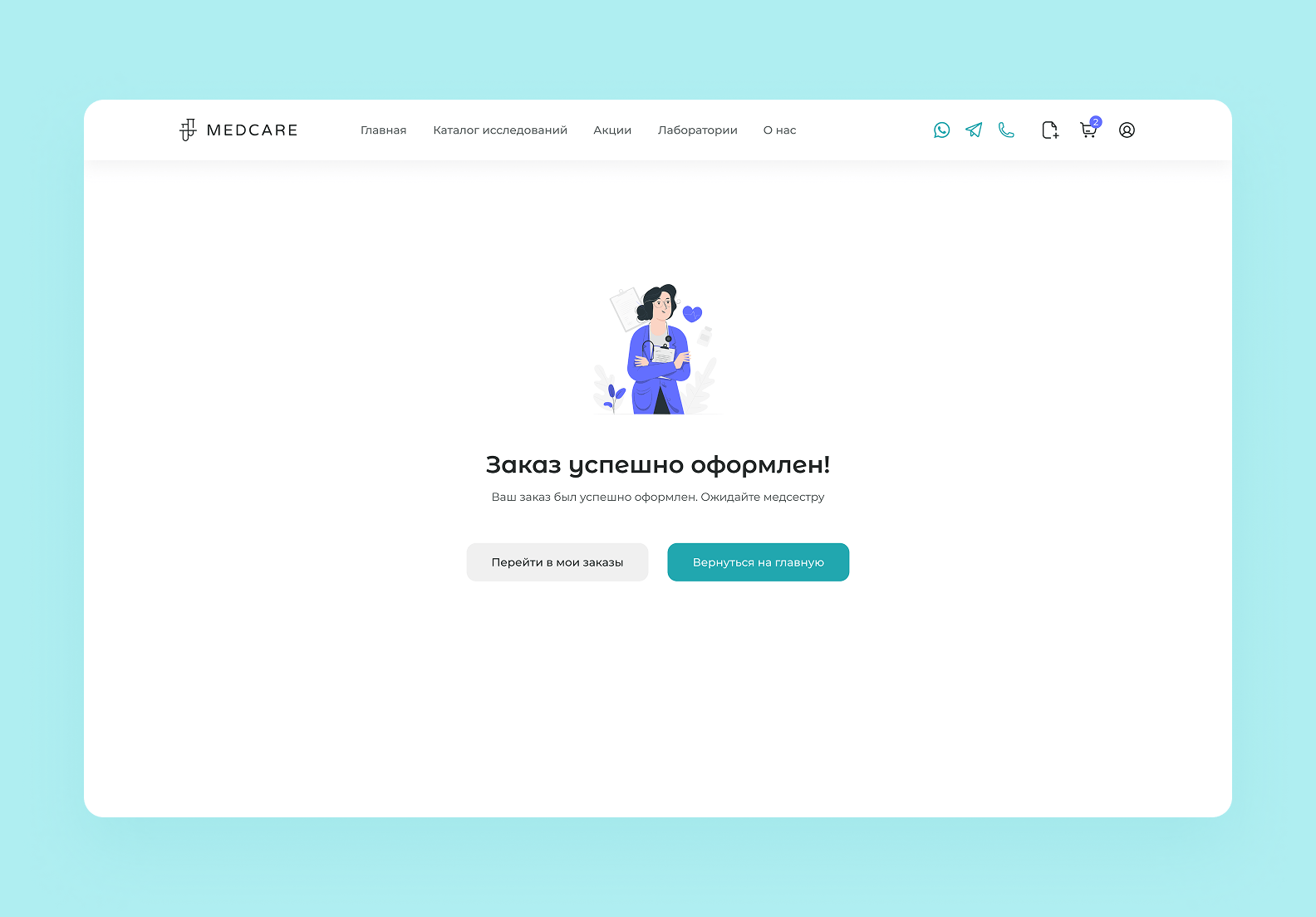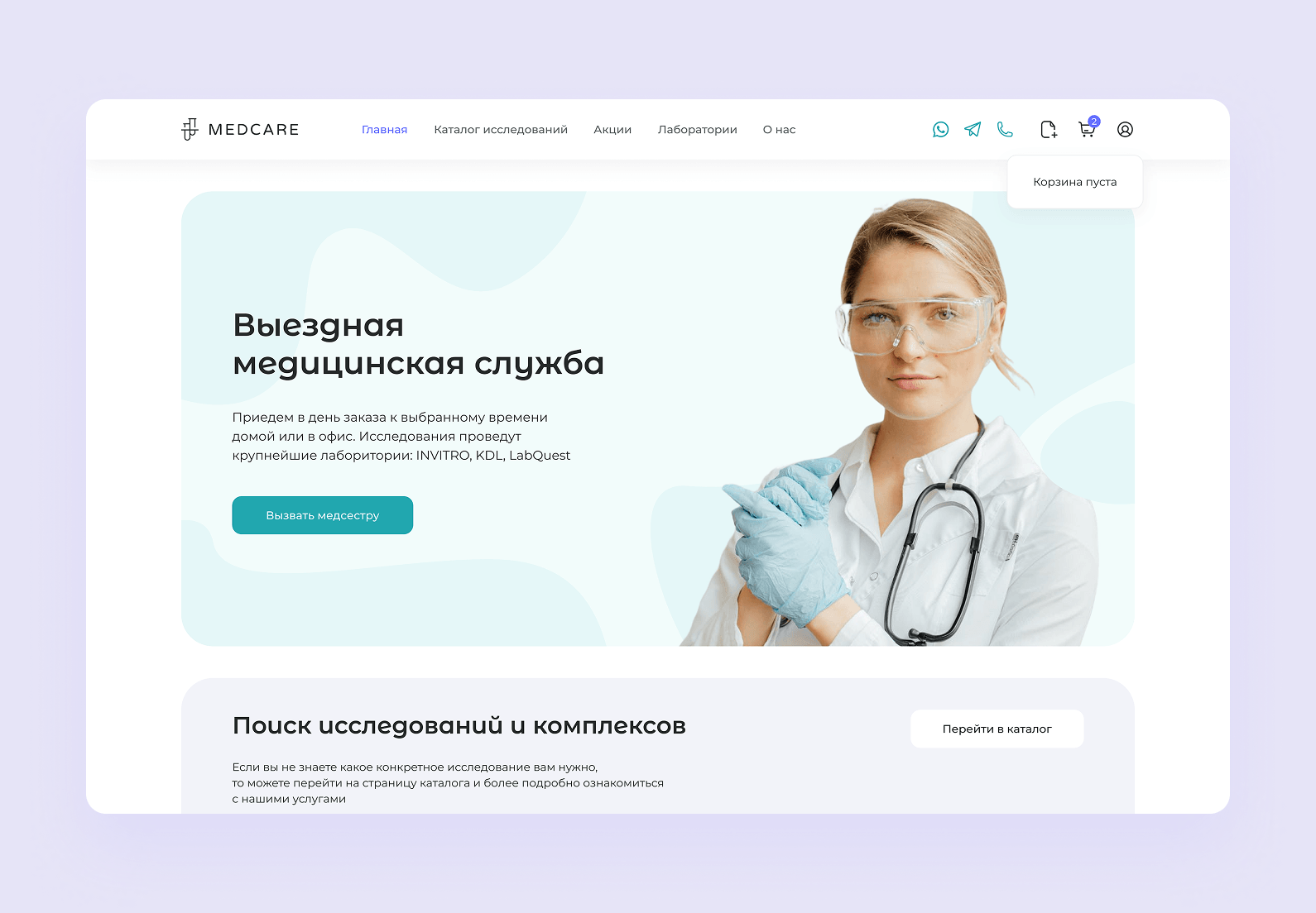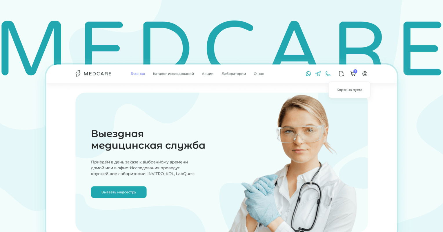 Обновленный сайт MedCare в релизе — посмотрите, как он выглядит. Клиенты остались довольны результатом — удобная навигация, продуманный дизайн и улучшенная логика взаимодействия сделали сервис понятнее и комфортнее для пользователей.