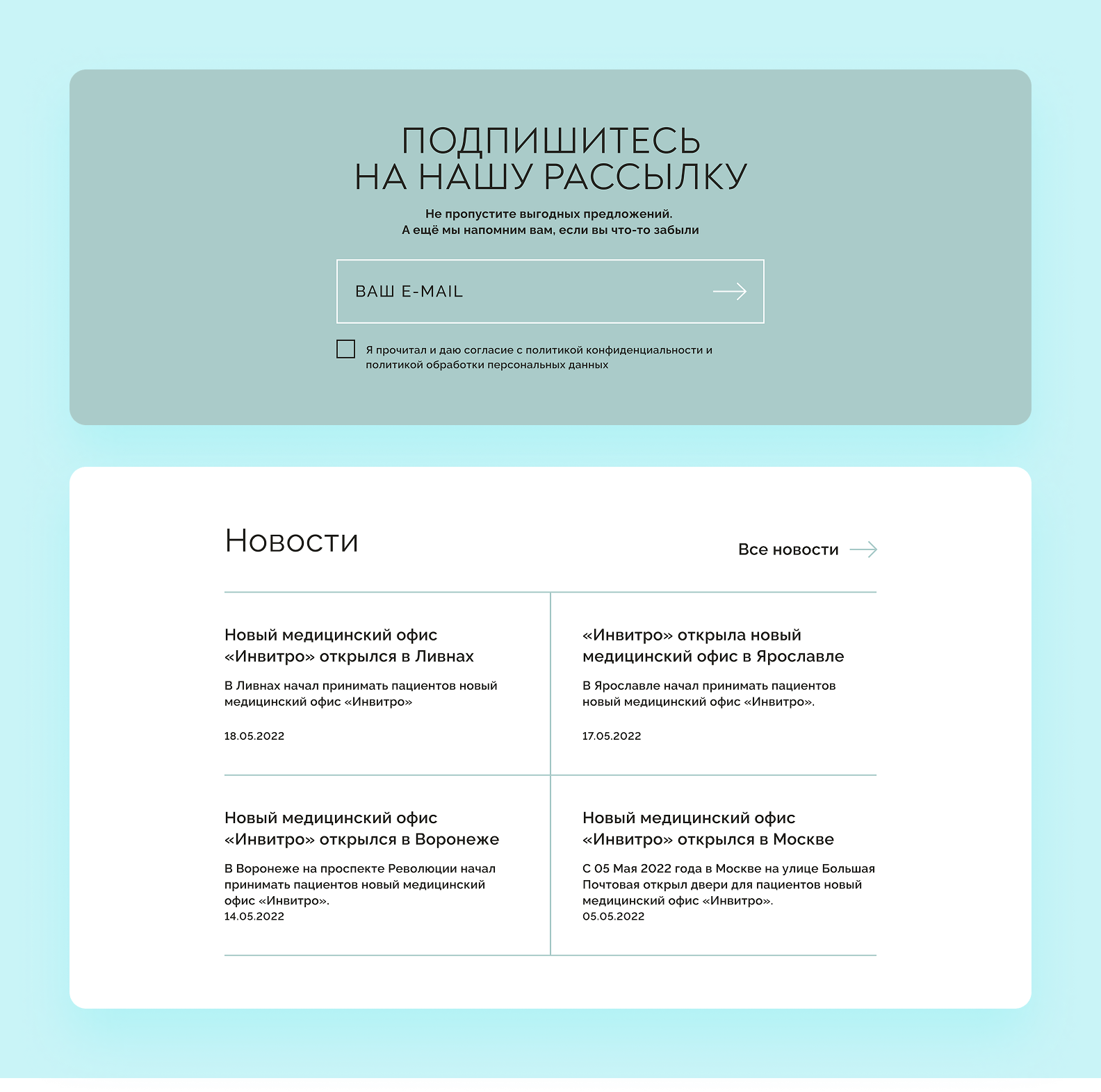 ◾️ Органично вписали фотостиль в дизайн главной страницы. Фотографии вызывают доверие и делают стиль сайта более живым и близким пользователям. В хиро-пейдж на главной странице разместили фото медицинского специалиста, чтобы подчеркнуть профессионализм компании, а также добавили снимки, связанные с медициной.