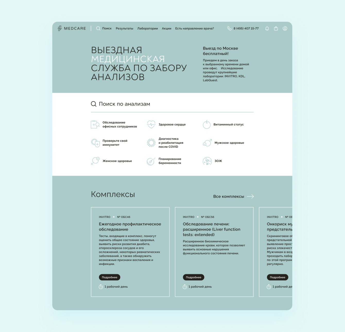 К нам обратилась компания MedCare — медицинский сервис, который помогает пациентам вызвать медсестру на дом для забора анализов. MedCare агрегирует предложения различных лабораторий, позволяя выбрать нужные исследования в одном месте. Это удобно: если анализы требуются в нескольких лабораториях, медсестра заберет биоматериал за один визит и передаст их в нужные центры. Компания работает в Москве и Московской области.