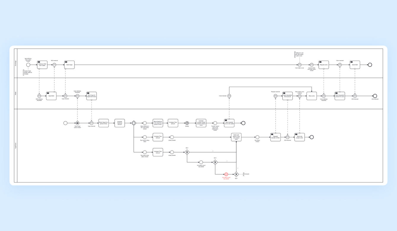 Чтобы продумать логику работы сервиса, мы всегда привлекаем системного аналитика — так было и с MedCare. Он подготовил BPMN-диаграммы — специальные схемы, которые показывают, какие шаги проходит пользователь и как обрабатываются данные внутри системы.