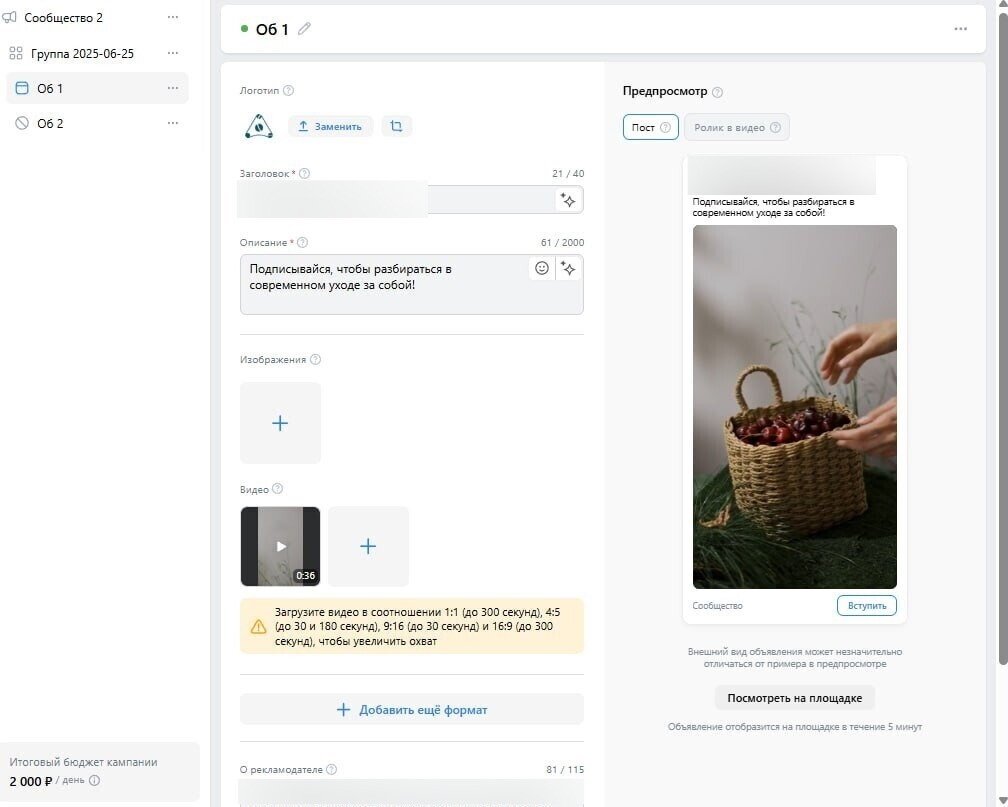 Реклама в vk