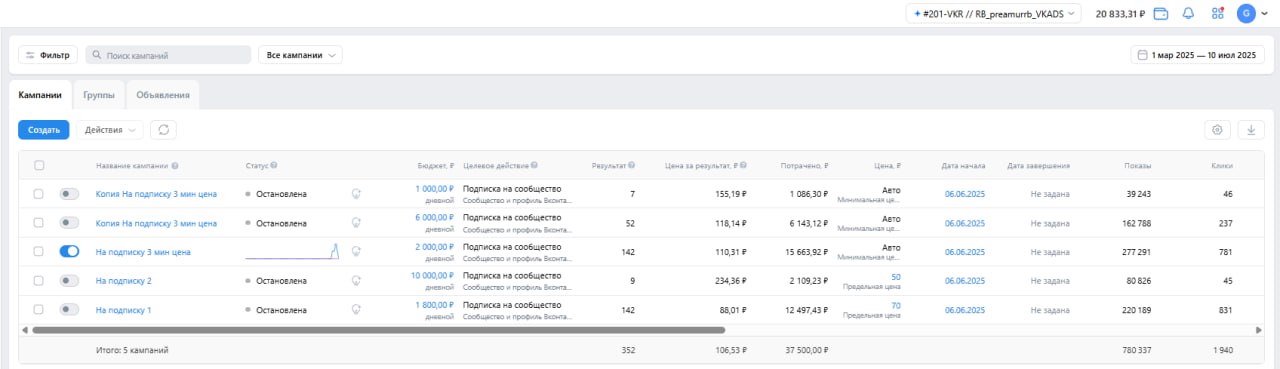 Никаких шансов выйти в плюс при такой цене. Хоть меняй баннеры, хоть крути интересы. Подписки не дешевели, алгоритмы упрямо вросли в дорогую цену.