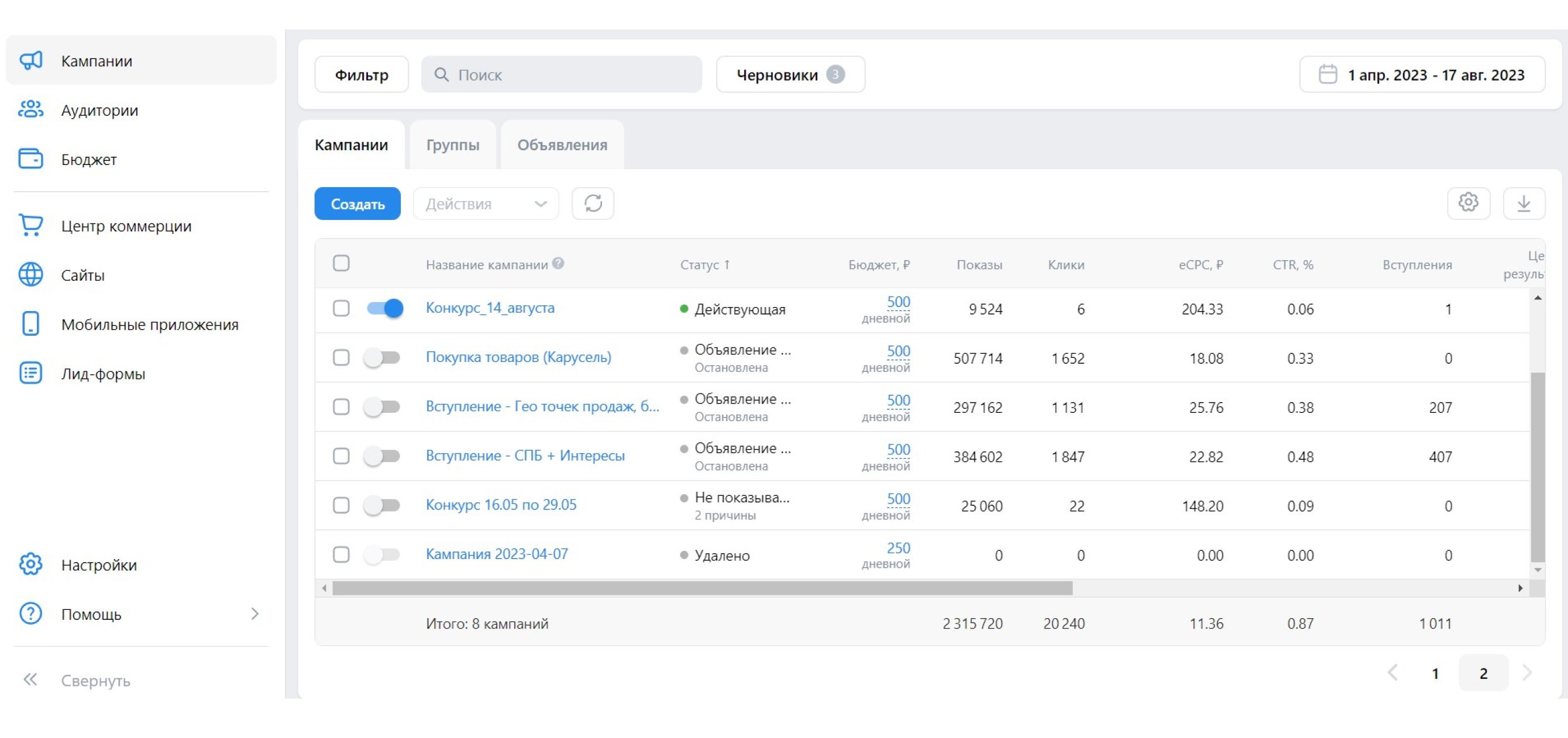 - Оптимизировать расходы на рекламу при достижении поставленных целей.