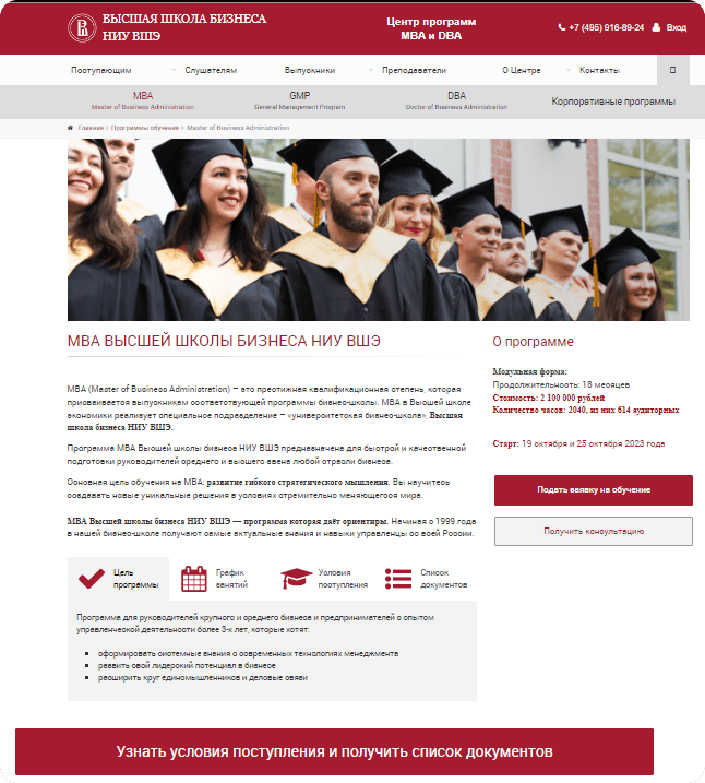 Главный секрет успеха продвижения Центра MBA и DBA Высшей школы экономики НИУ ВШЭ — идти в ногу со временем и регулярно обновлять сайт.
