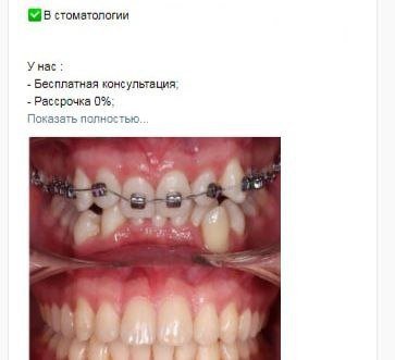 Самый удачный креатив, который запускали на услугу «установка брекет-системы»