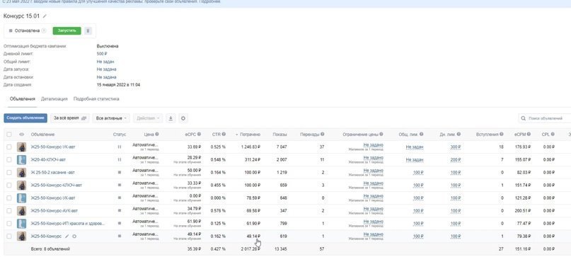 Мы тестировали огромное количество разных аудиторий: Конкуренты, свои участники, ретаргет, интересы и поведение, ключевую фразу и все равно заявка выходила дорого. Но помогло снизить стоимость заявки именно увеличение количества касаний аудитории. Цена заявки снизилась и продолжает снижаться.