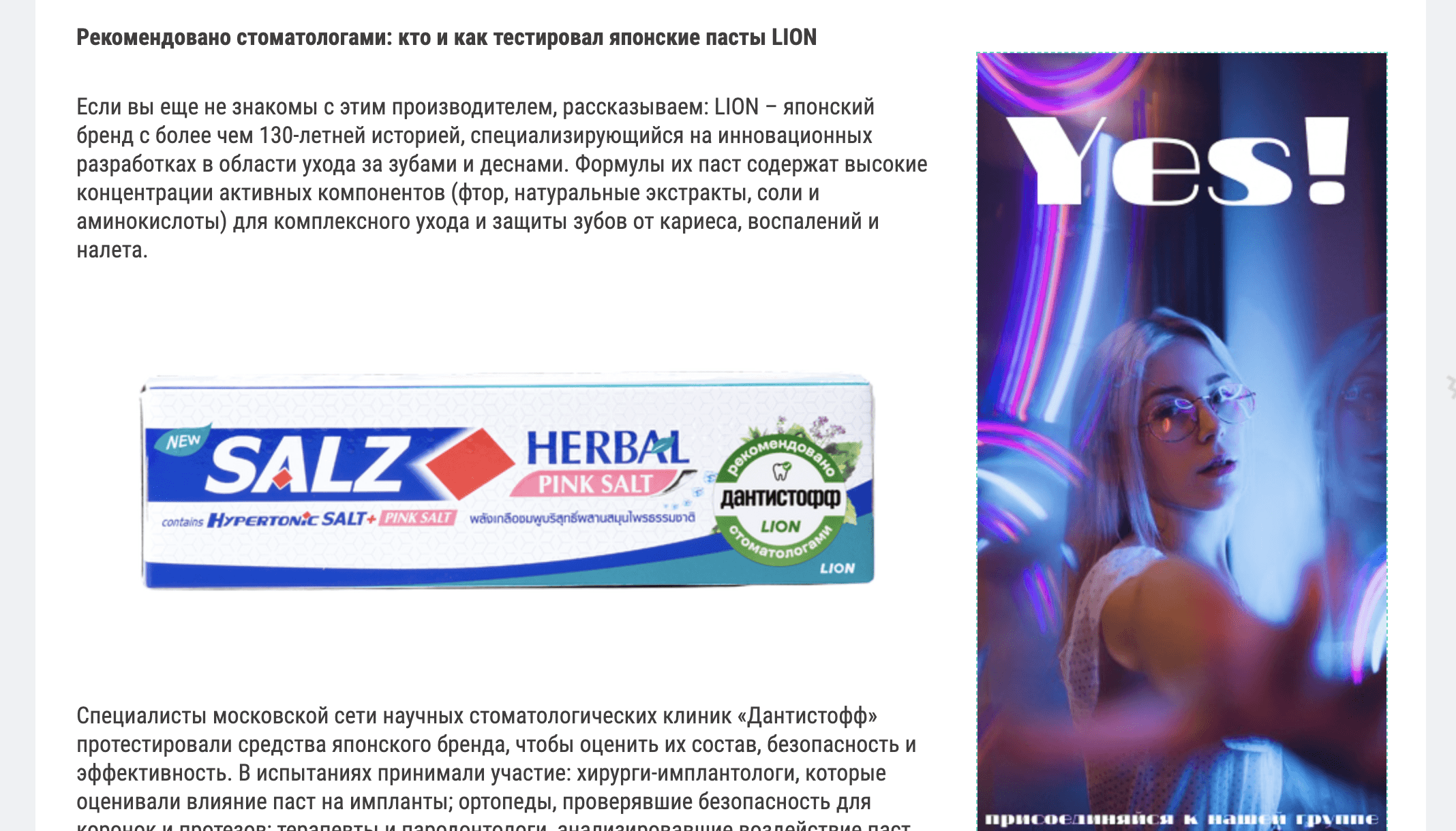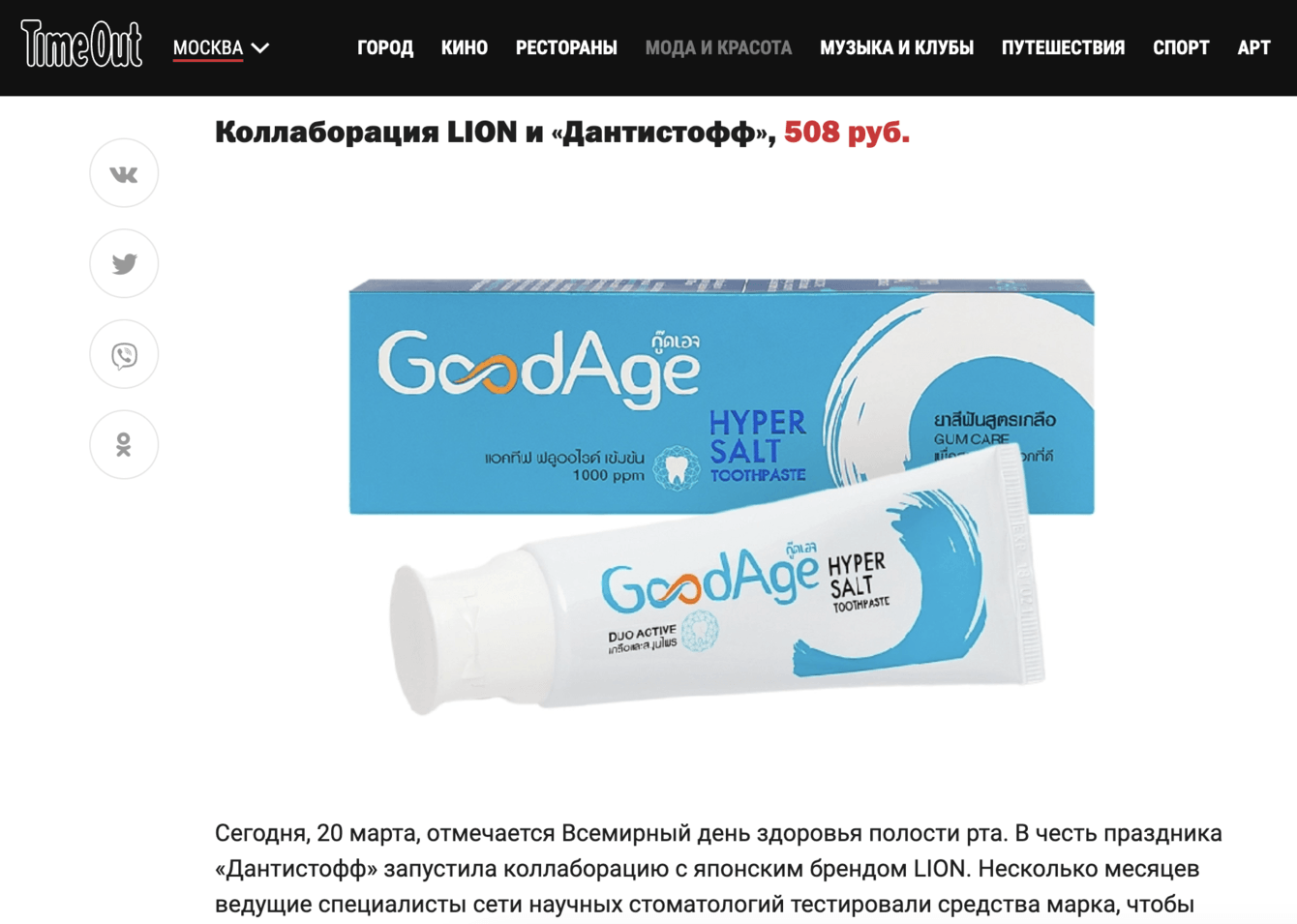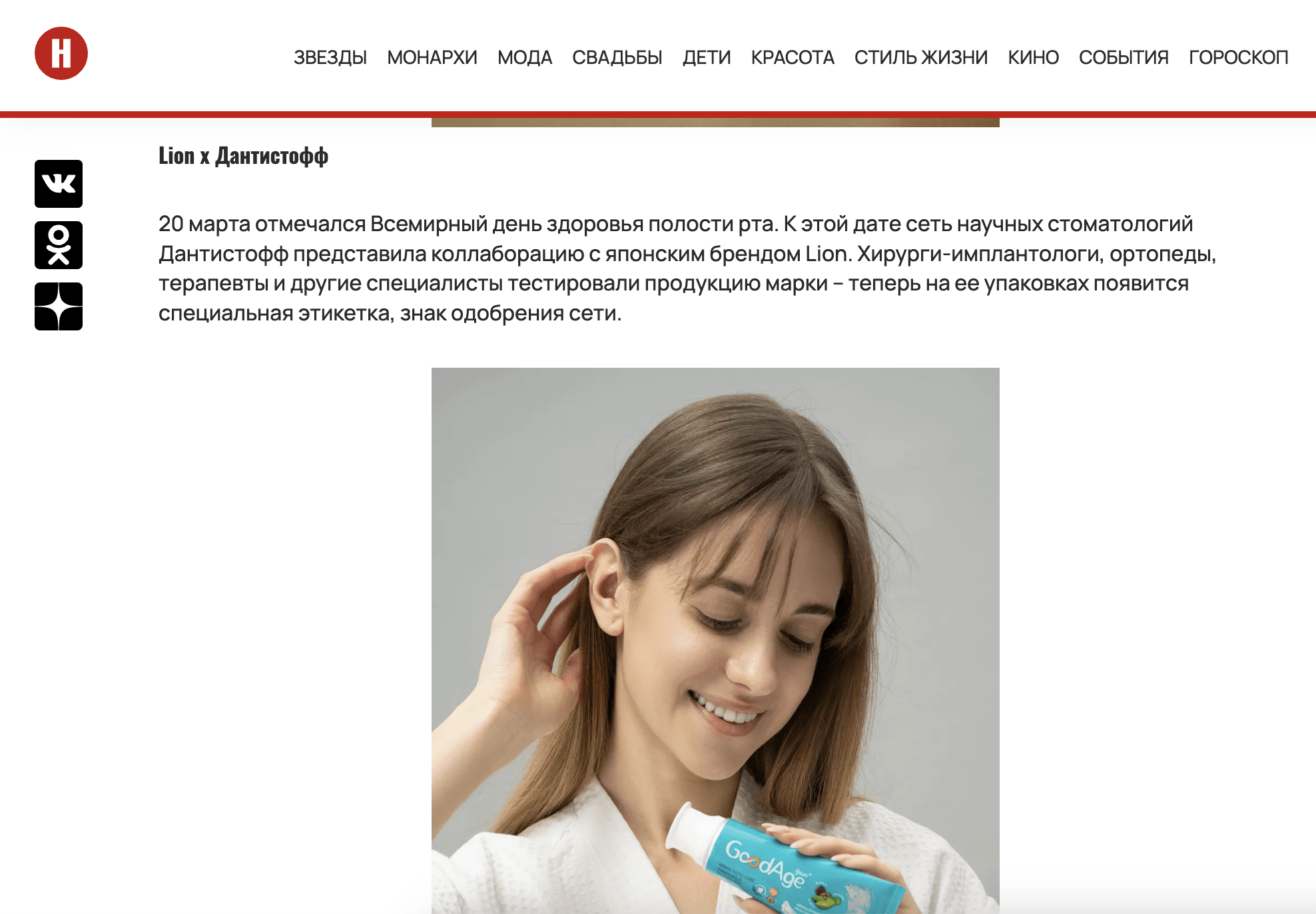 Для повышения узнаваемости сети стоматологий Дантистофф мы реализовали коллаборацию с брендом продуктов ухода за полостью рта Japonica. Коллаборация между смежными брендами способствует расширению и взаимообмену аудиториями брендов, и является инфоповодом, который позволяет инициировать интерес СМИ и лидеров мнений.