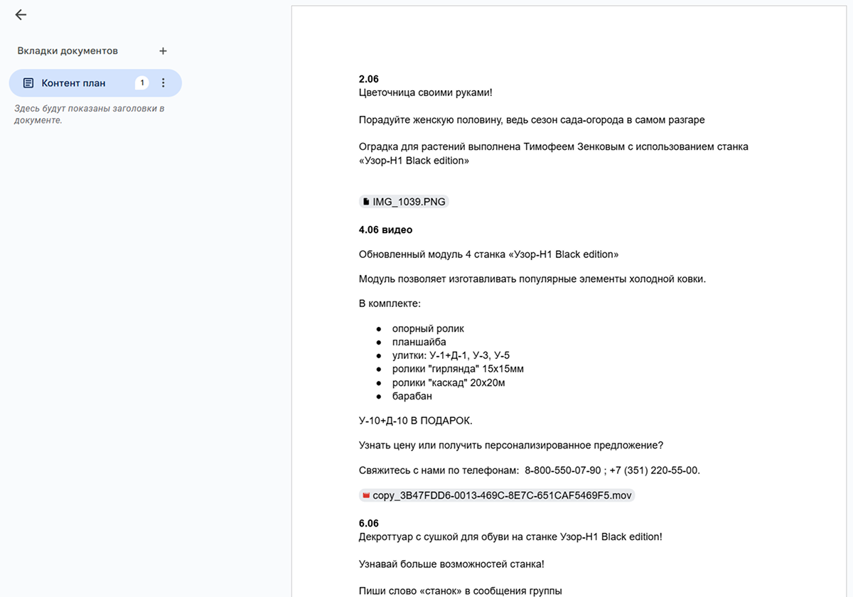 Создан контент-план: посты с фокусом на «бизнес из гаража», окупаемость, идеи для старта своего дела