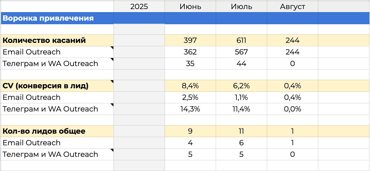 Кроме того, предложение агентства было сильным, но не всегда понятным для первых касаний: сложно донести ценность исследований, если не попасть в контекст конкретного бренда и продукта.