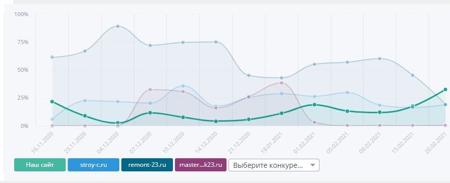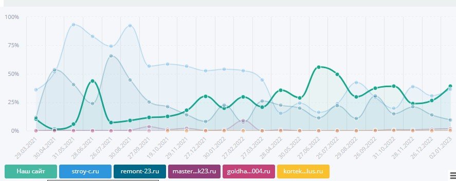 Например, клиент наотрез не хотел размещать калькулятор ремонта, помогающий сбору контактных данных, который был у всех конкурентов в шапке сайта. Его согласие и последующее внедрение функционала помогло обогнать конкурента и выйти на первое место по видимости.