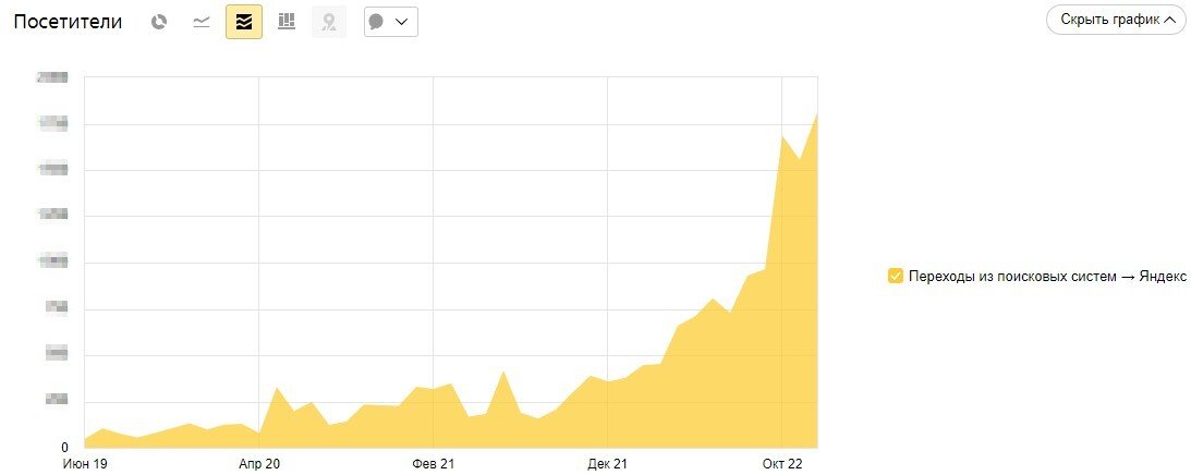 Чтобы вернуть все на свои места, раздел снова закрыли и открывали теперь уже равномерно, по 2-3 страницы в неделю. Только тогда статьи начали работать и приносить трафик.