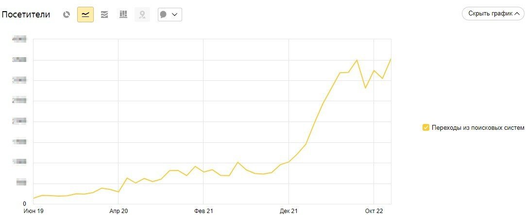 Мы пробовали работать с разными копирайтерами, специализирующимися на данной тематике, в рамках обозначенного бюджета. Идеально подходящего специалиста найти не удалось, а клиент требовал исключительно целевой трафик. Поэтому в марте 2022 г. мы перестали писать статьи.