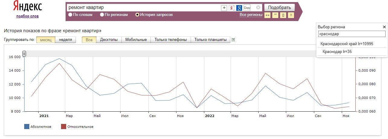 Клиент: компания по оказанию услуг по ремонту квартир в Краснодаре.