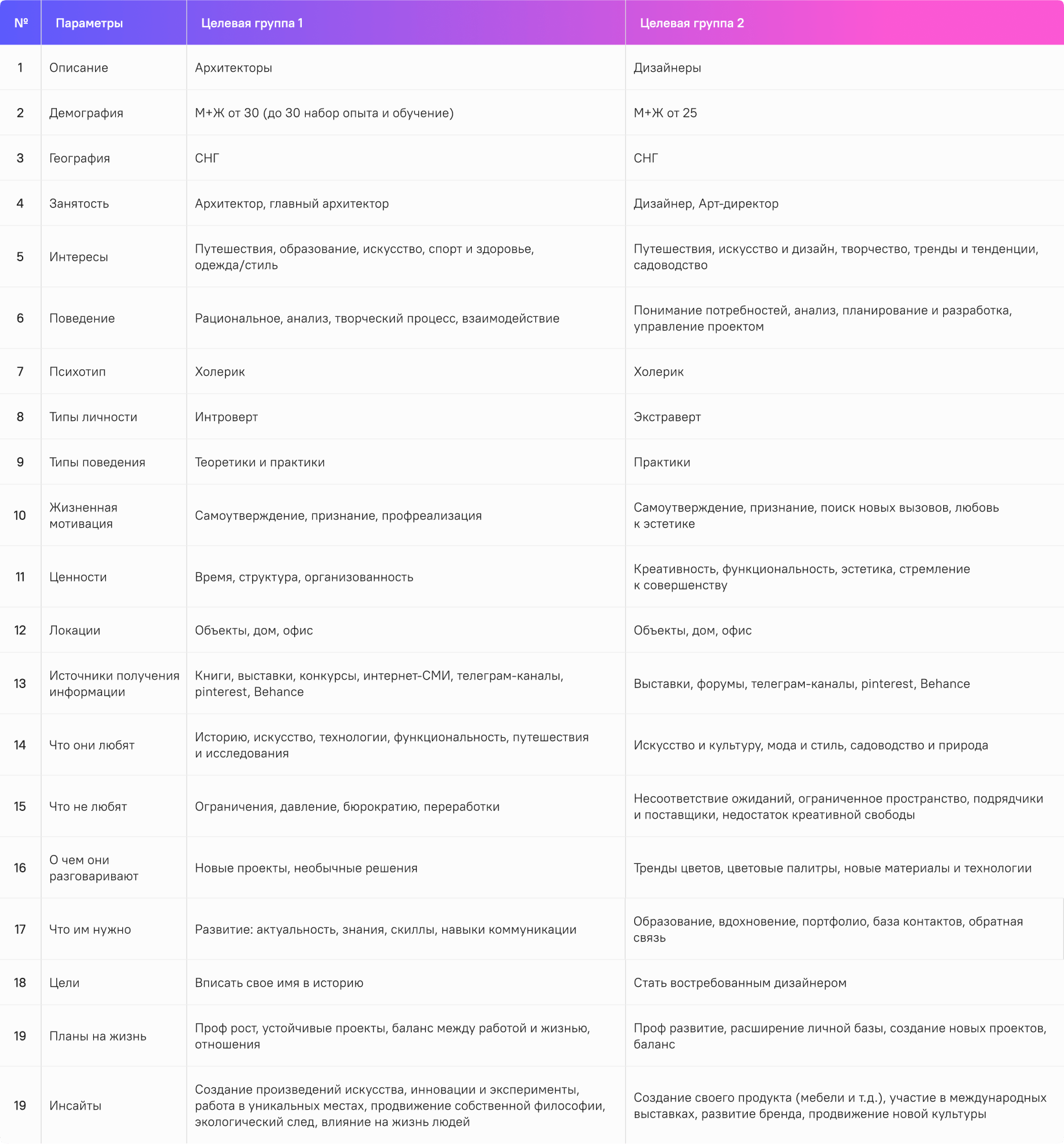 Мы провели детальный анализ тематики, чтобы понять текущие тренды и интересы в сфере дизайна и архитектуры. Это позволило выделить ключевые сегменты аудитории и охарактеризовать их.