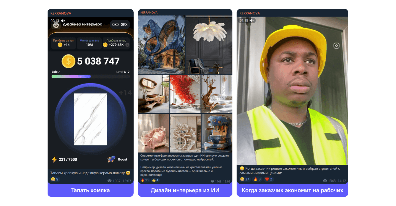 В отличие от конкурентов, мы активно внедряли динамичный контент, включая видео и GIF, что помогло разнообразить ленту и привлечь внимание широкой профессиональной аудитории — архитекторов и дизайнеров интерьеров.