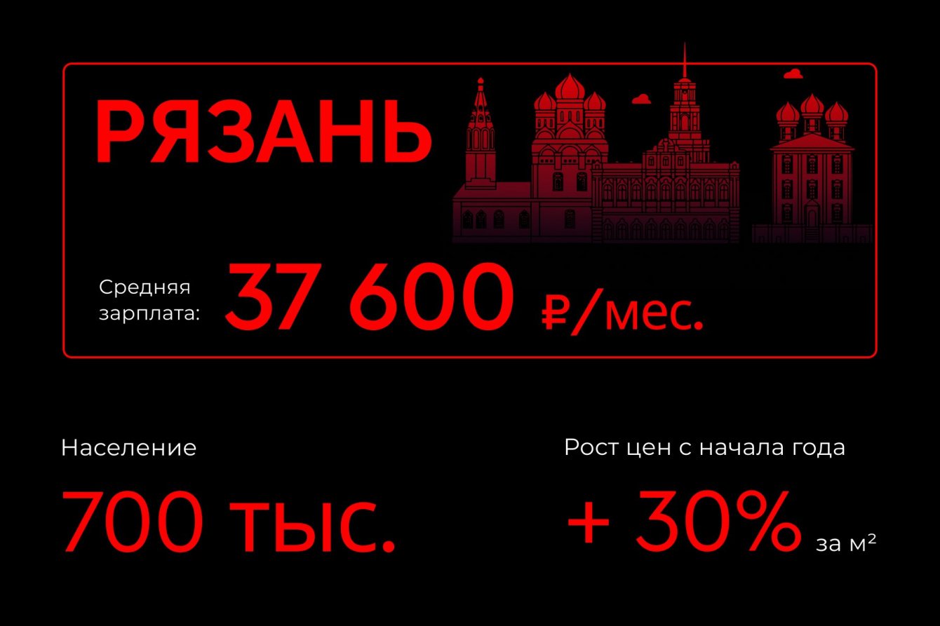 Также, согласно данным по количеству запросов в Wordstat, квартиры бизнес-класса пользуются наименьшим спросом среди остальных классов жилья. Кроме того, по информации ЕРЗ (Единого ресурса застройщиков), Рязань занимает первое место в рейтинге по динамике цен за 1 кв. м в новостройках. С начала текущего года средняя цена за 1 кв. м выросла здесь на 30%.