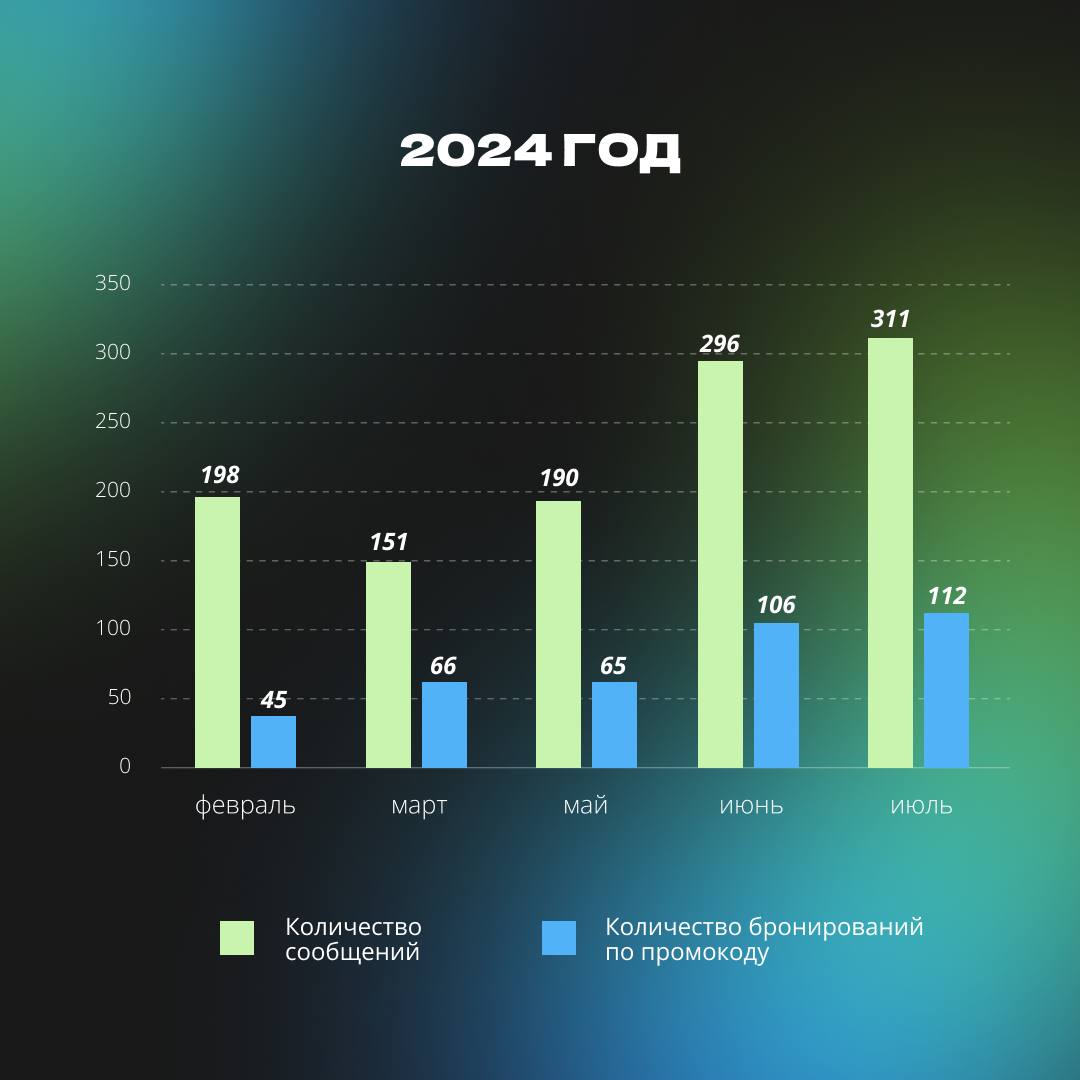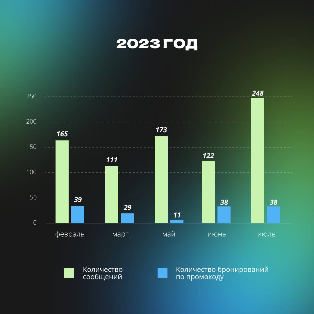 Решение было максимально простым и бюджетным — внедрение чат-бота, который быстро реагирует на запросы и сразу предлагает нашим подписчикам промокод. Бот подключили в марте 2024 года.