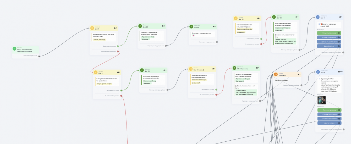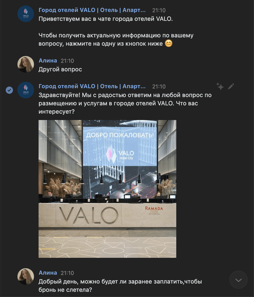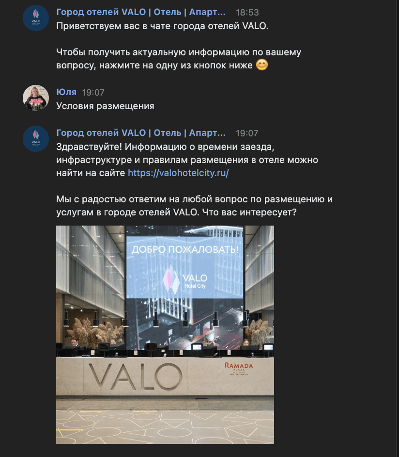 Так как в этом году на территории комплекса открылось еще 4 отеля (а всего их целых 6) значительно выросло число запросов в директ в группе VK VALO HOTEL CITY. Мы поняли, что не успеваем обрабатывать их вручную в нужные сроки.