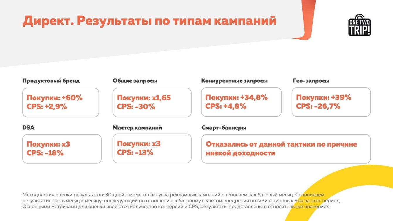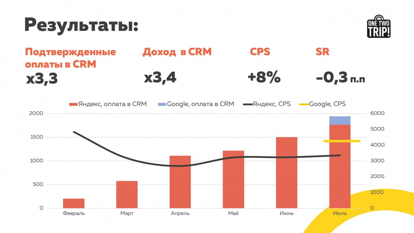 За 5 месяцев нам удалось масштабировать рекламные кампании в 3 раза с увеличением CPS (Cost per Sale) лишь на 5%. На старте кампании мы определили для себя, что приемлемым увеличением стоимости бронирования при масштабировании будет 10–15%.