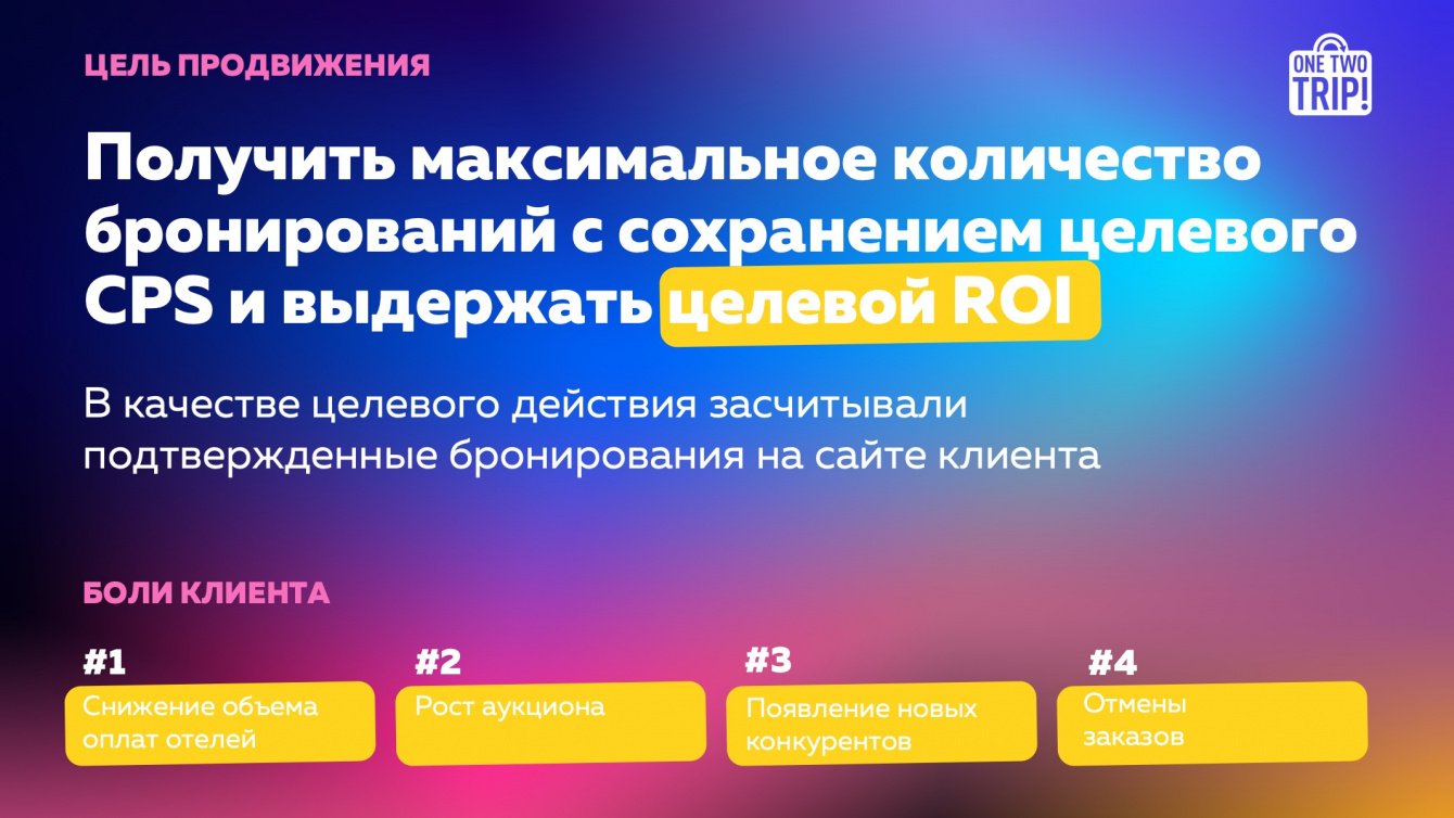 - кампанию по запросу продуктового бренда («OneTwoTrip Отели»);