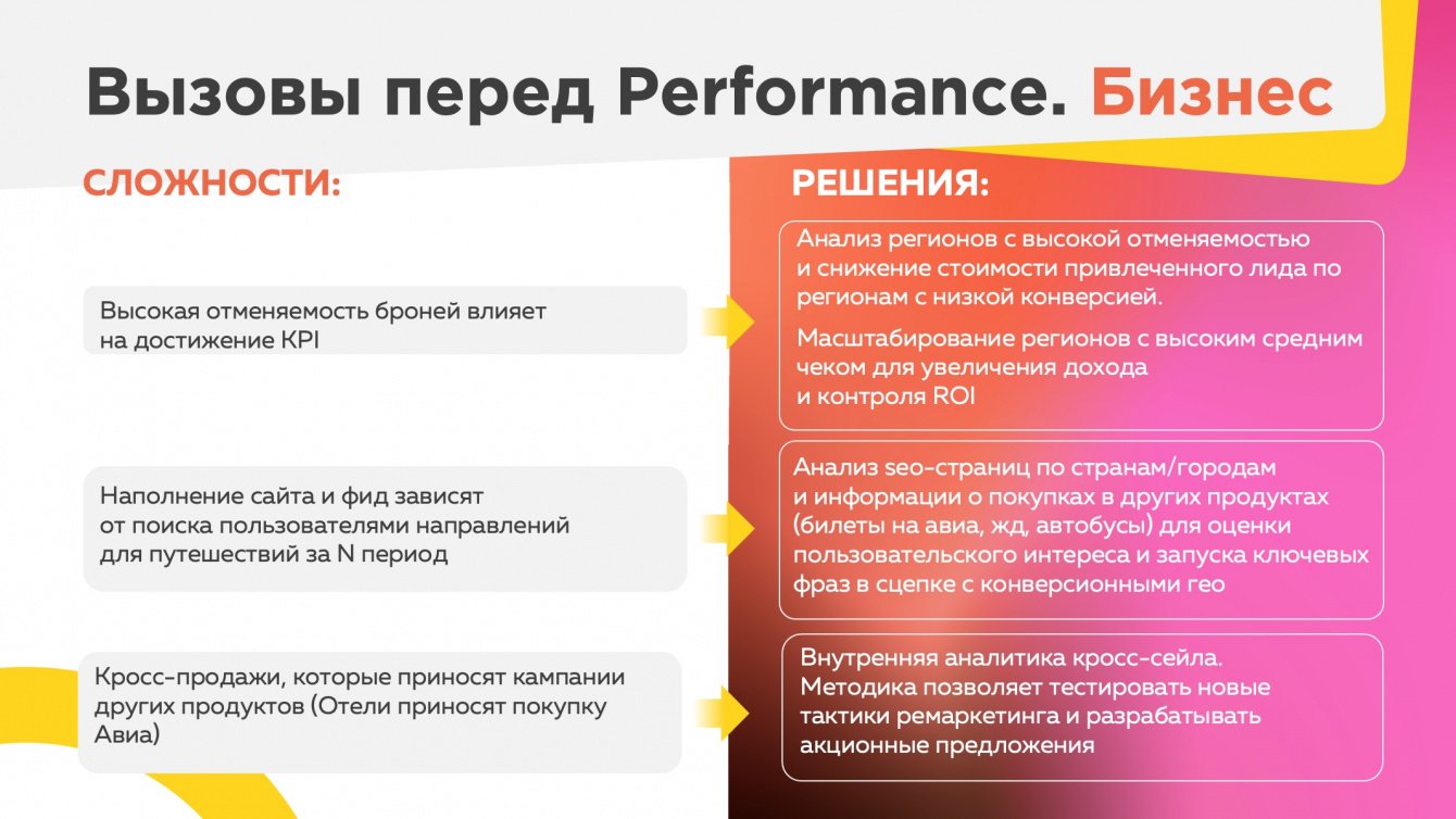 Поскольку в рамках работы с клиентом также были выявлены такие сложности, как появление новых игроков, повышение цен на перелеты и проживание в отелях, высокая отменяемость броней, были предложены следующие решения:
