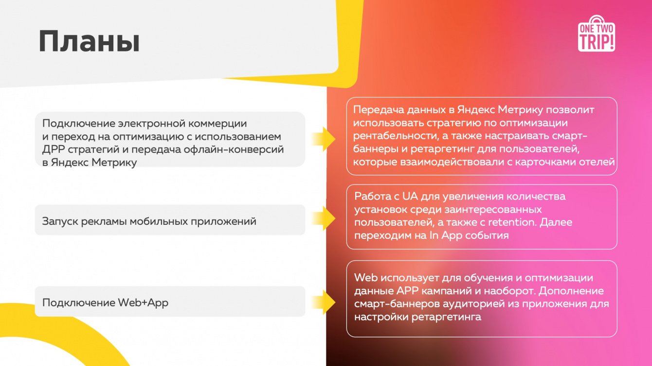 В РСЯ запустили ремаркетинговую стратегию и разработали специальные предложения под разные целевые действия пользователей (например, скидка на бронирование отеля для тех, кто купил авиа или ж/д билет на сайте).