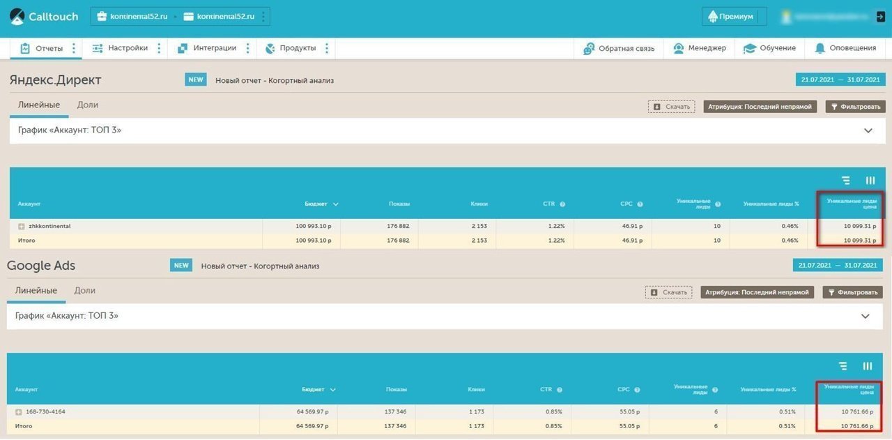 На этом этапе для корректной настройки аналитики потребовалась помощь специалистов Calltouch. В сотрудничестве с ними удалось правильно настроить корректную фиксацию звонков и заявок в сервисе коллтрекинга. Таким способом получилось достичь приемлемой стоимости лида при сохранении максимального их количества.