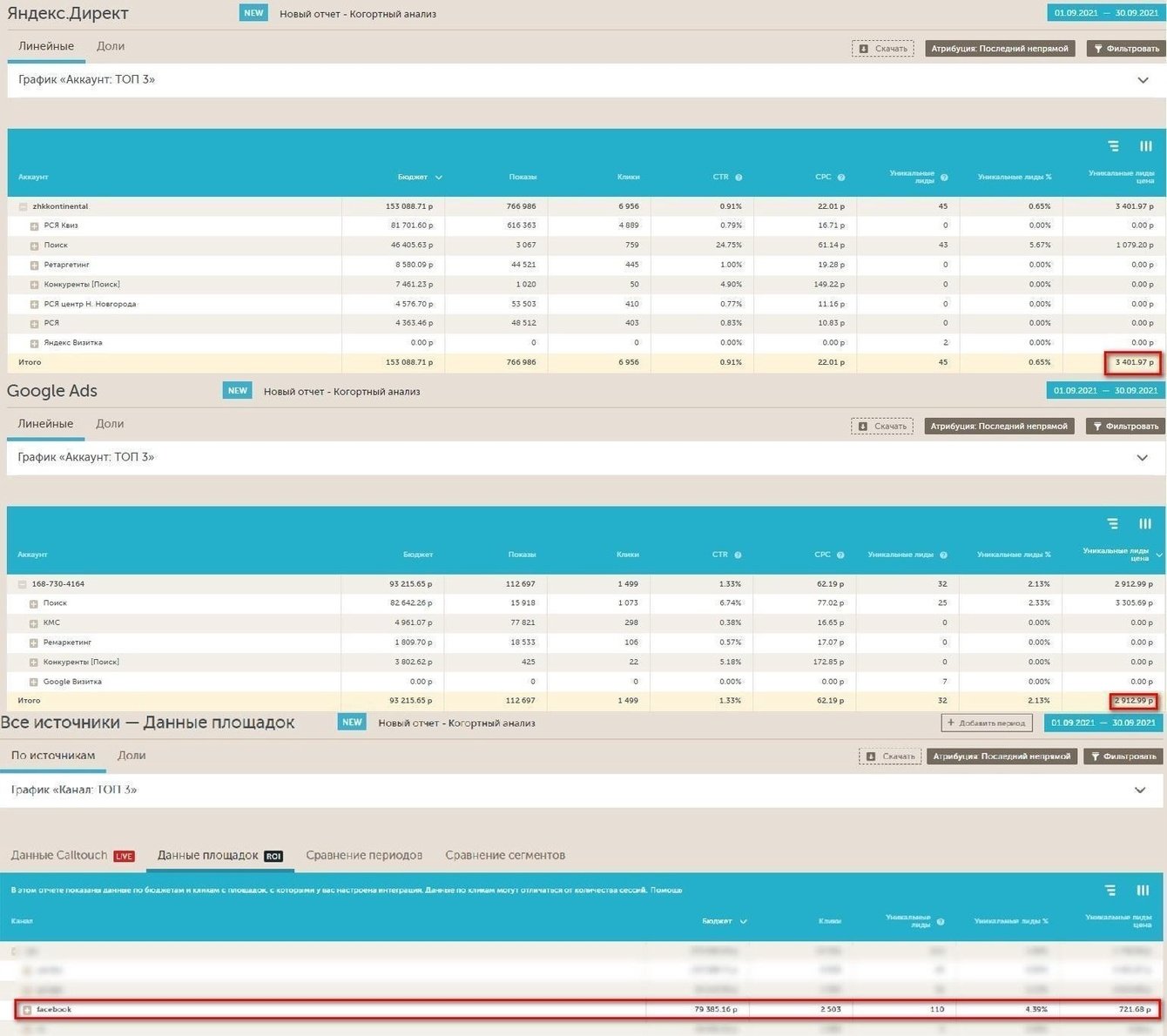 В сентябре после подведения промежуточных итогов потребовалась работа над ошибками. Текущие настройки рекламных кампаний исправили с учетом сделанных выводов.