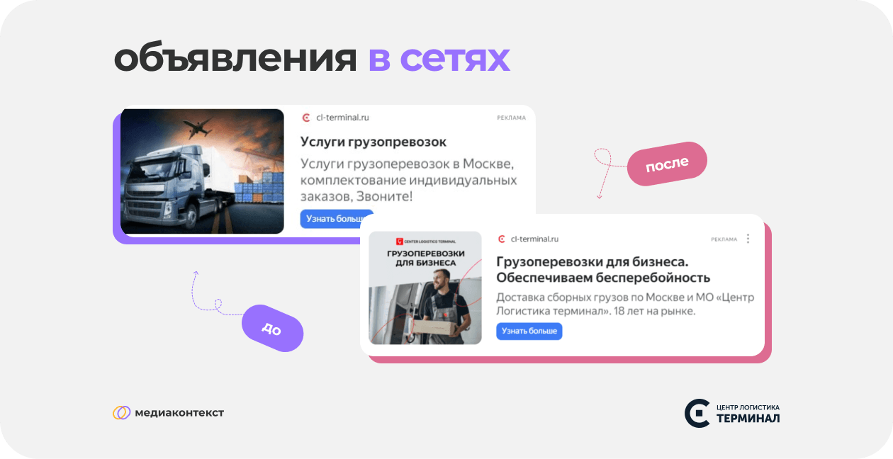 Посмотрев объявления конкурентов, вычленили основные УТП: скорость, соблюдение сроков, личный менеджер, минимальное количество паллет/коробок.