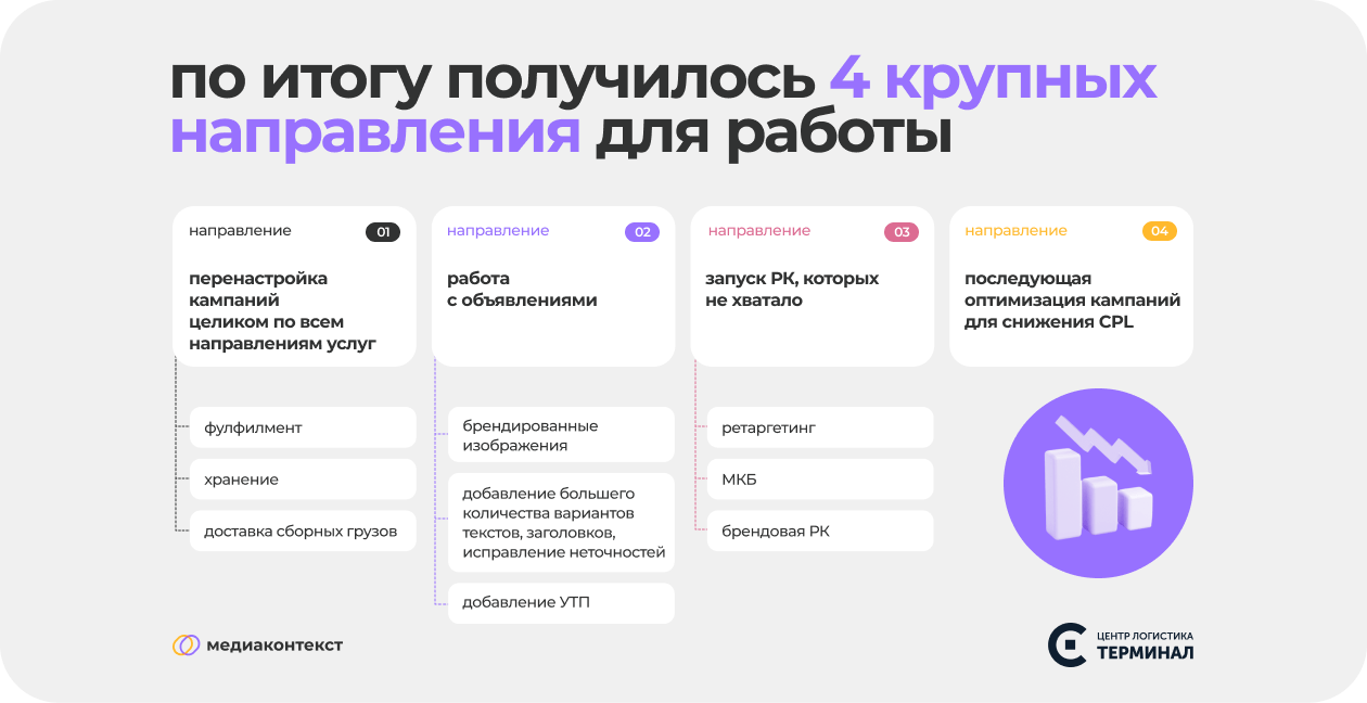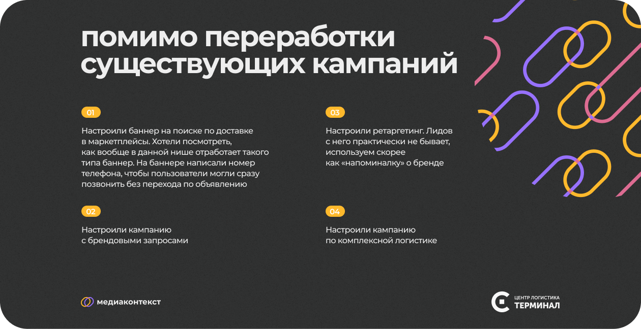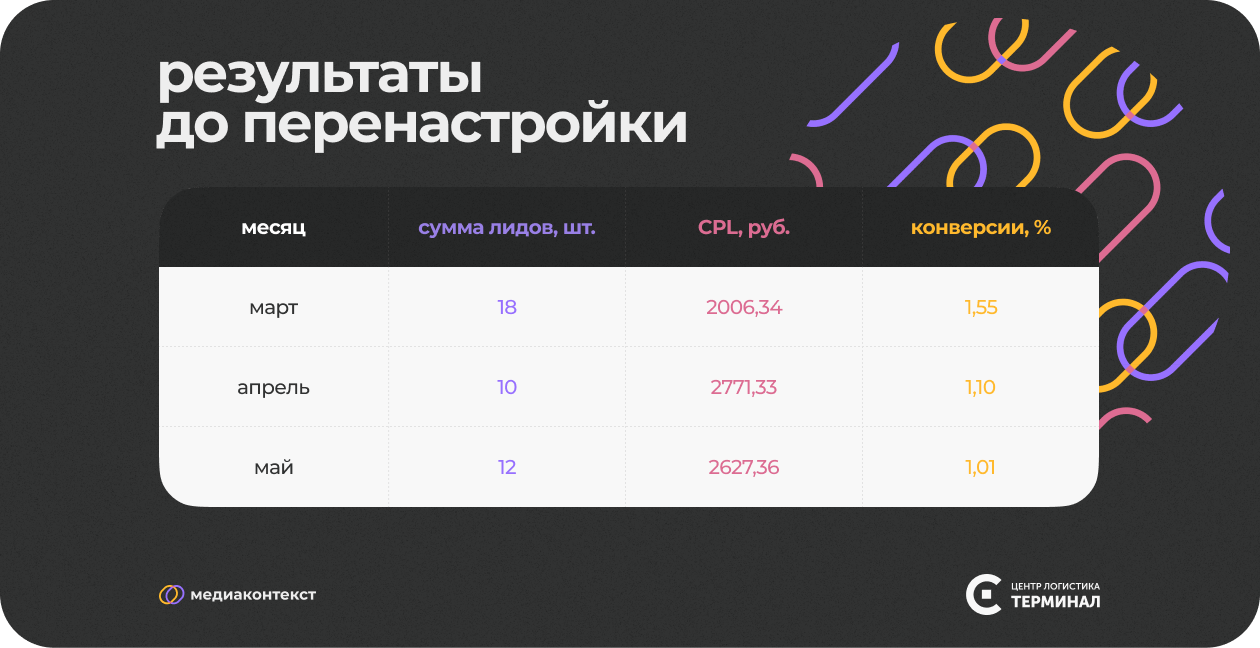 Задача: увеличить количество заявок и сделать их поток стабильным, снизить стоимость лида, наладить коммуникацию и отчетность.