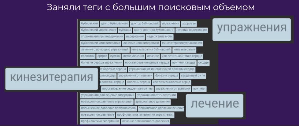 Благодаря SEO-оптимизации по итогам года канал доктора Бубновского вошел в топ-5 самых популярных каналов в нише по ключевым запросам.