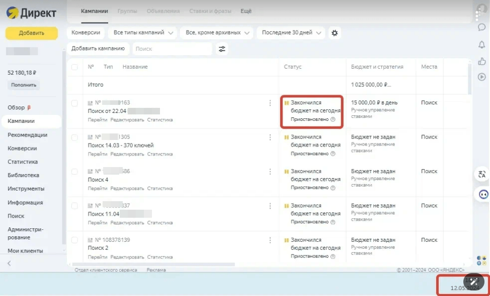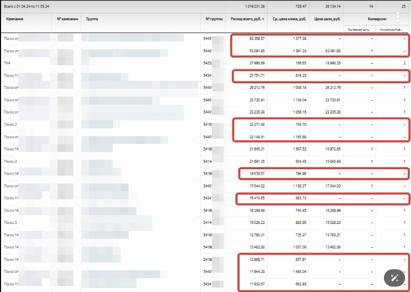 Увидели, что бюджет аккаунта закончился задолго до 12 часов ночи. При этом больший поток заявок в данной тематике бывает после окончания рабочего дня, и клиент теряет возможных заказчиков. У большинства рекламных кампаний бюджет не задан, а стоит ограничение на всем аккаунте. И больше всего денег тратят кампании с высокой ценой конверсии.