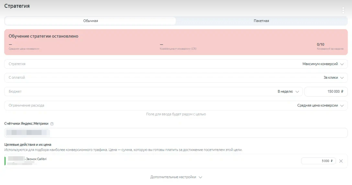 Собрали эти кампании в пакетную стратегию, чтобы у алгоритмов Яндекса было больше данных для оптимизации. Пакетная стратегия получила в итоге конверсии ниже средней цены.