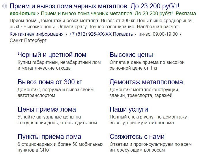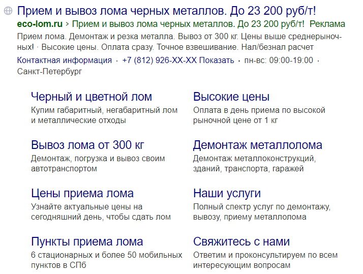• Настройка отдельных кампании по направлениям: прием черного/цветного лома, вывоз, демонтаж и т.д.