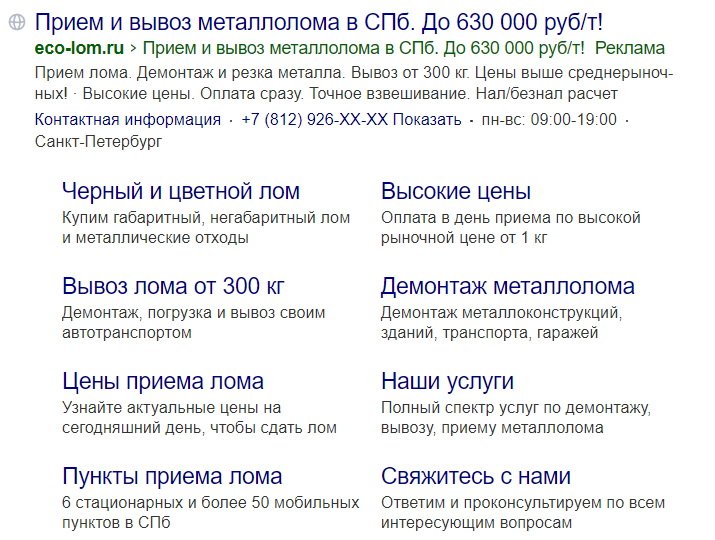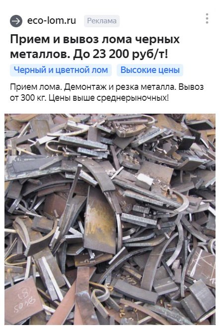 • Настроили отдельные кампании под каждый тип услуги: черный лом, цветной лом, демонтаж и вывоз.
