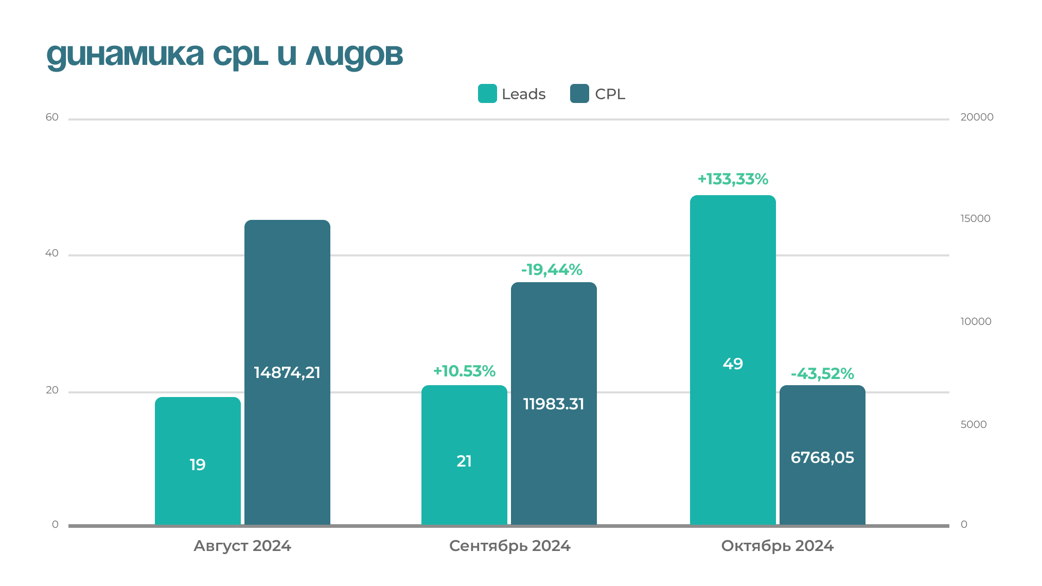Результат превзошел ожидания — лиды росли, а CPL продолжал падать.