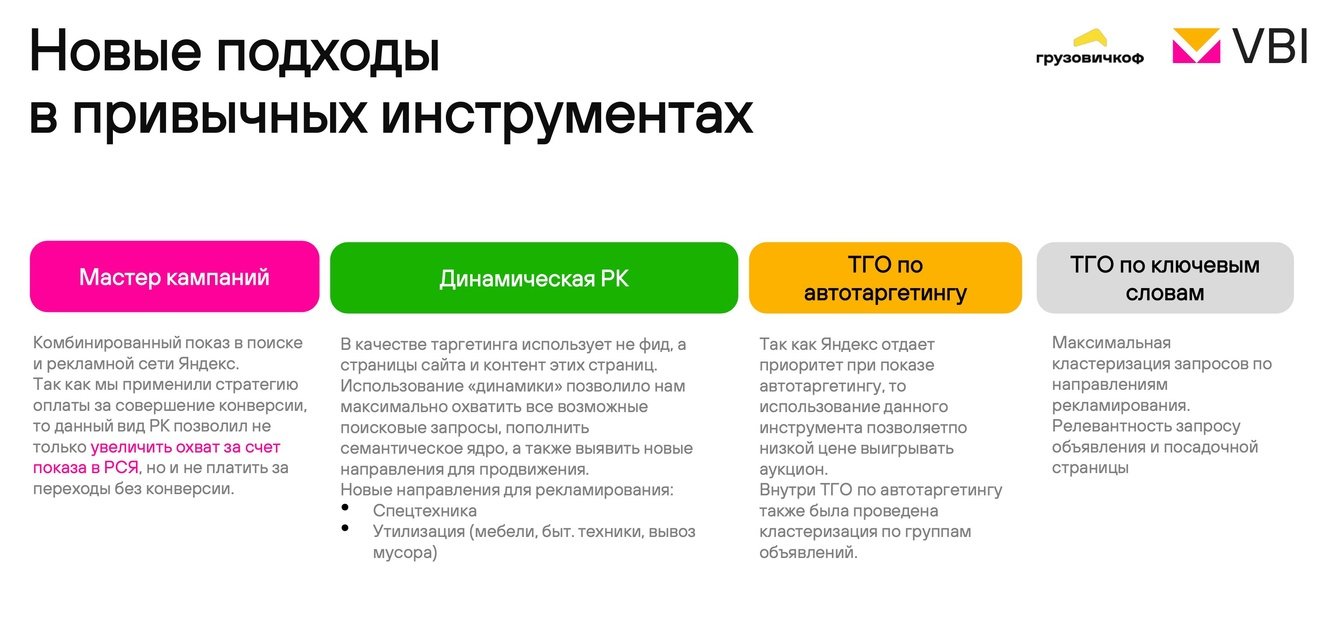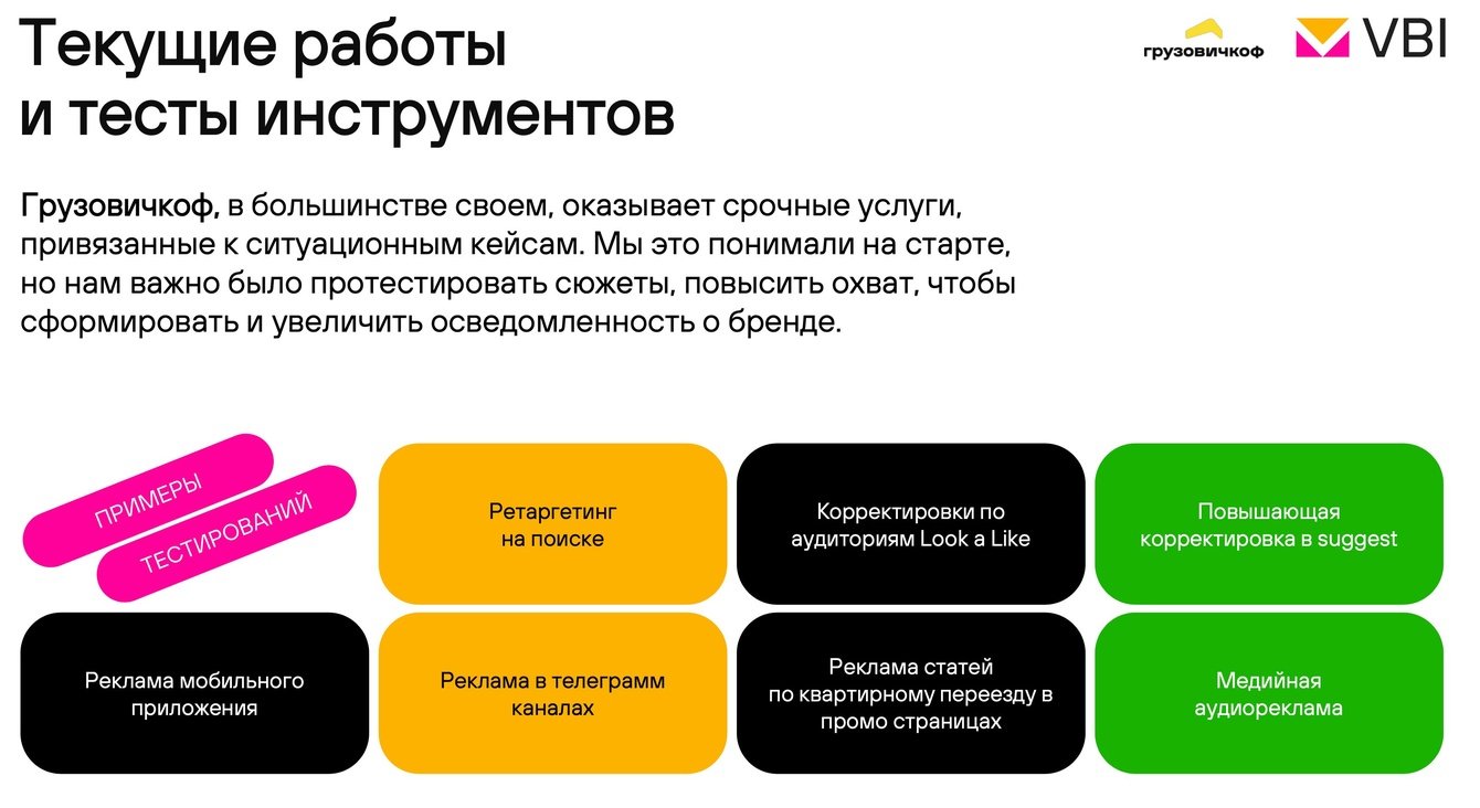 Специалистам VBI предстояло совместно с командой на стороне заказчика запустить в синергии медийные каналы. При этом наша работа касалась больше performance-инструментов.