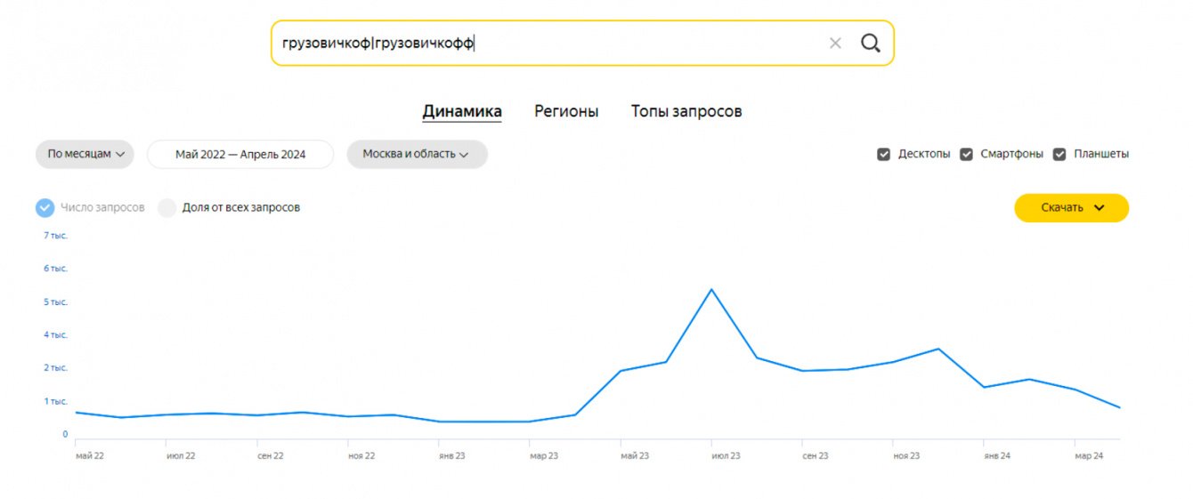 На старте, в июле-августе 2022 года распределение доли обращений по брендовым и небрендовым запросам выглядело следующим образом: